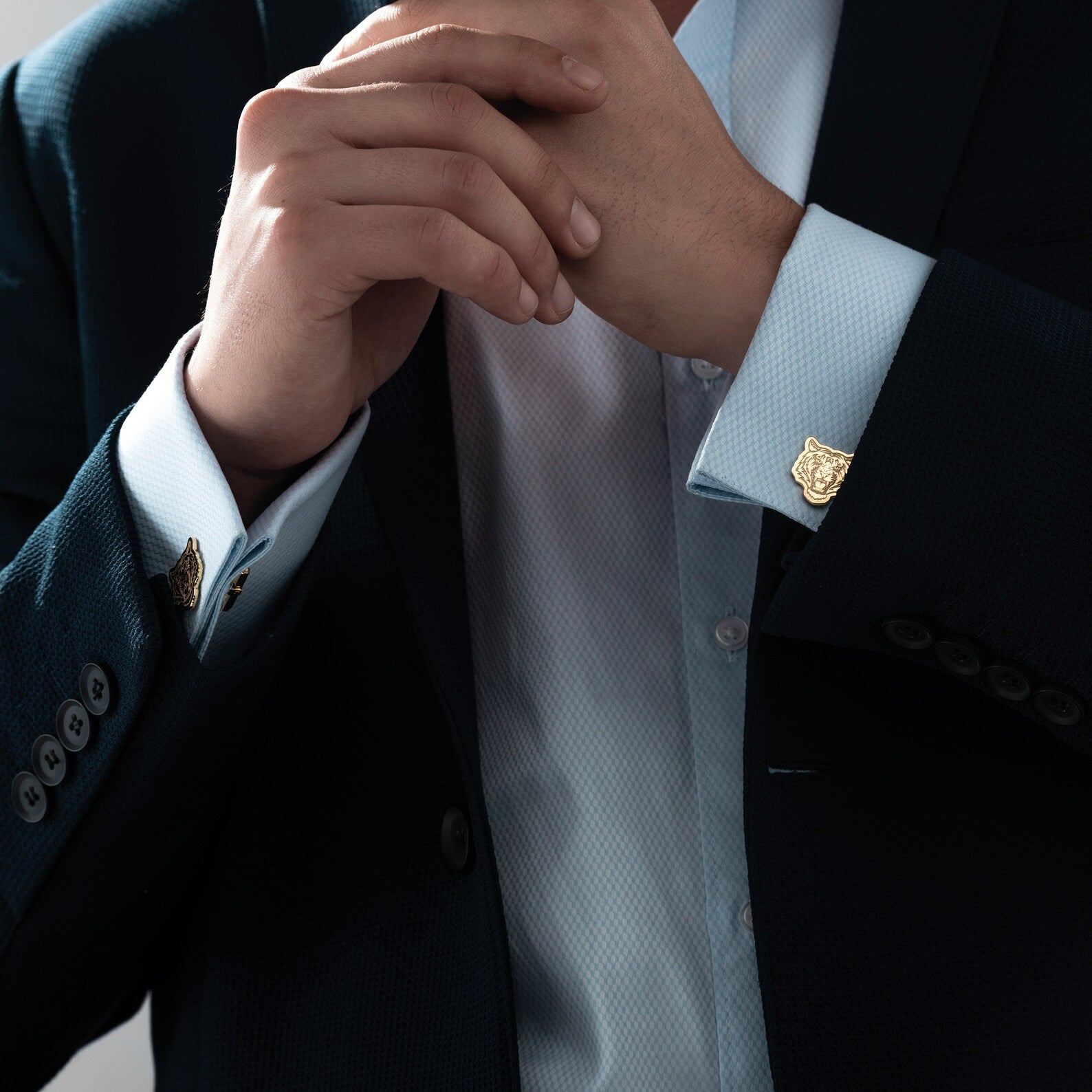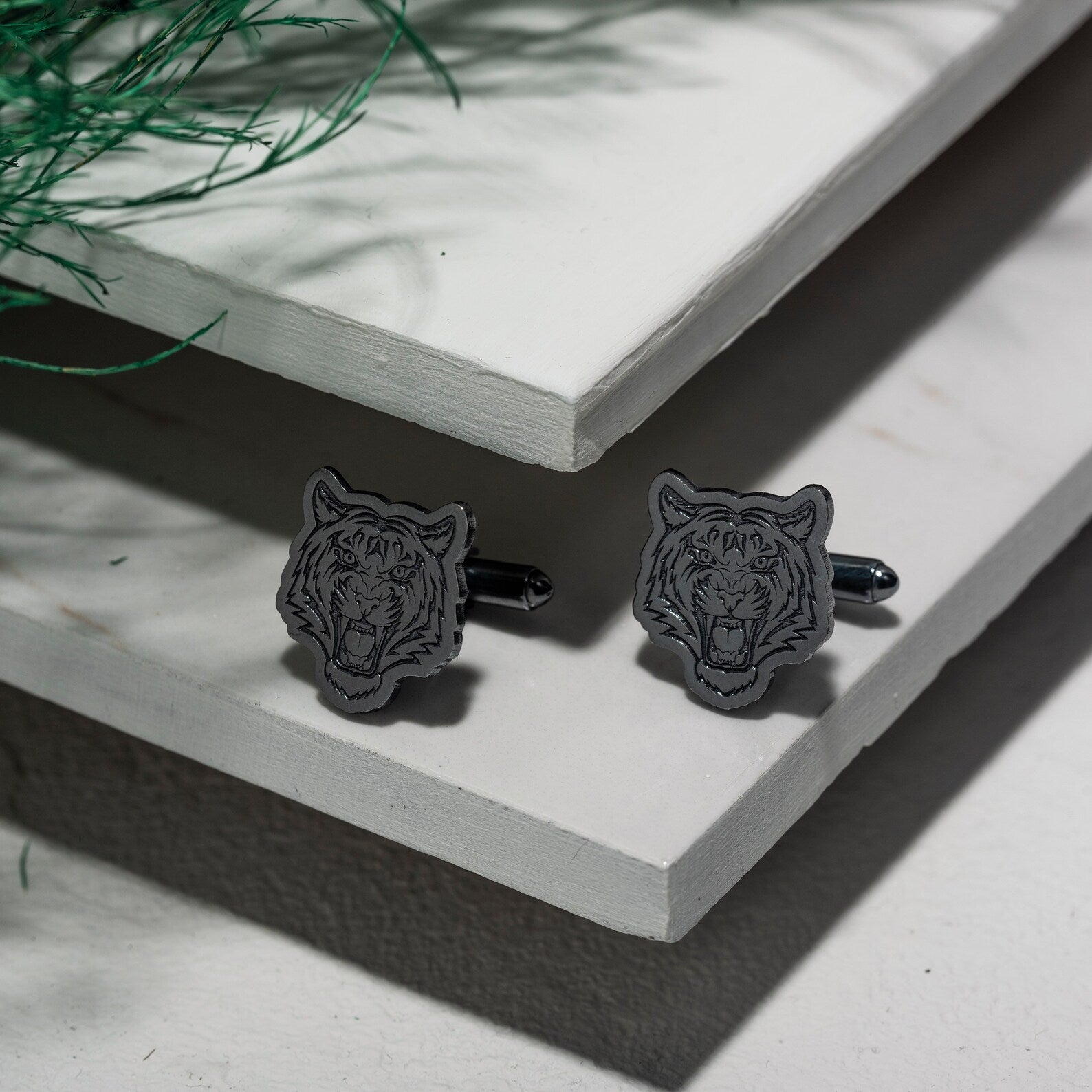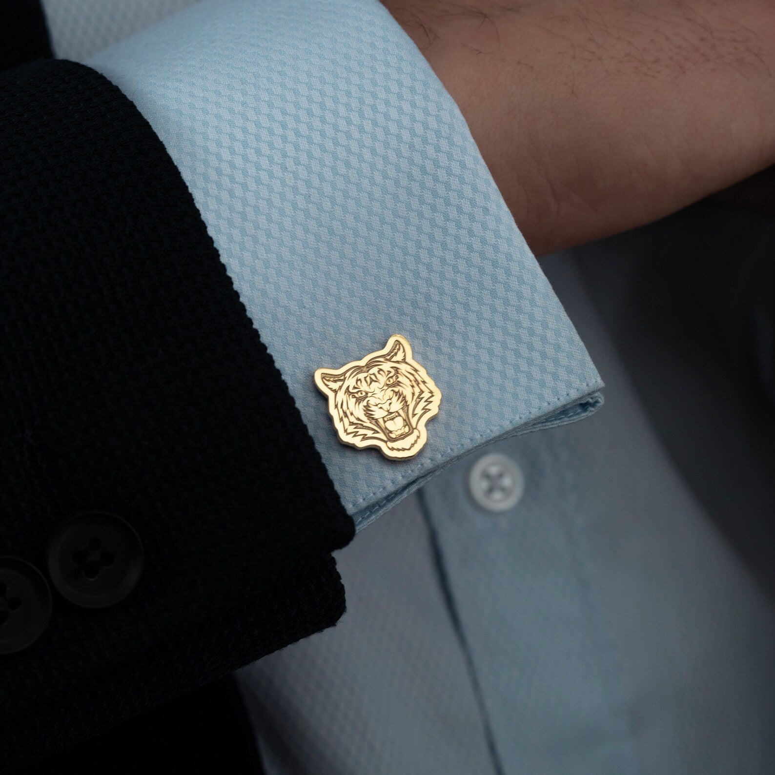These elegant 18K gold-plated tiger cufflinks feature a bold, eye-catching design that adds a touch of sophistication and strength to any formal outfit. Perfect for animal lovers or those seeking a unique accessory, these cufflinks combine luxury with a fierce, stylish flair.