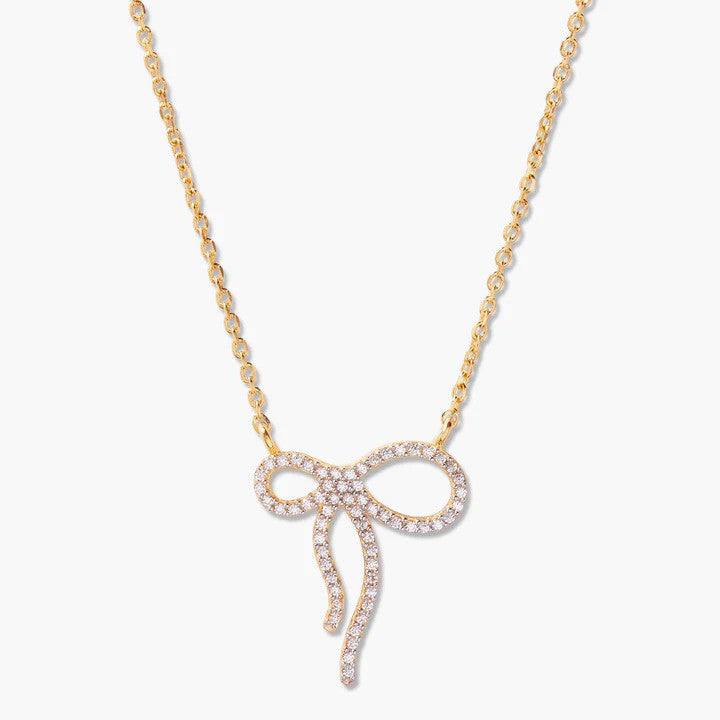The Adeline Bow Vermeil Necklace is a delicate, elegant piece of jewelry featuring a dainty bow design. Made from high-quality vermeil, a thick layer of gold over sterling silver, it offers a luxurious and timeless look. The necklace is perfect for adding a touch of sophistication to any outfit, combining femininity and grace with a subtle, yet stylish flair.
