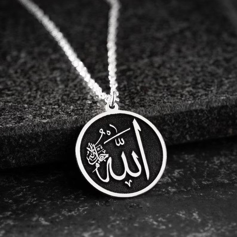 The Allah and Muhammad Arabic Pendant is a beautifully crafted piece of jewelry that features the sacred names of Allah and Prophet Muhammad (PBUH) in elegant Arabic calligraphy. This pendant serves as a meaningful reminder of faith and devotion, making it a perfect accessory for those who wish to carry their spirituality close to their heart. Ideal for everyday wear or as a thoughtful gift, it combines tradition with timeless style.