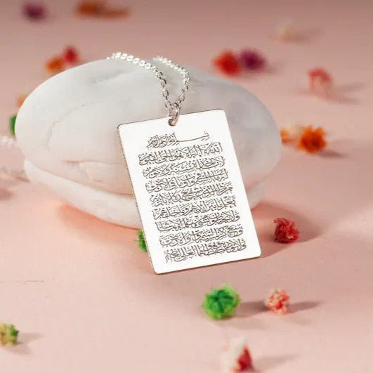 The Ayatul Kursi Necklace is a beautiful and meaningful piece of jewelry, featuring the powerful verse from the Quran, Ayatul Kursi. It serves as a reminder of Allah's protection and blessings. Perfect as a thoughtful gift for Ramadan and Eid, this necklace combines spiritual significance with elegant design, making it a cherished keepsake for loved ones.