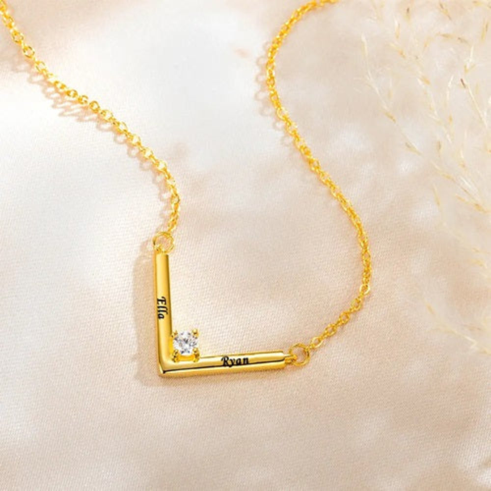 Gift for Her - This Custom Name V-Shaped Bar Necklace will also be a charming gift for the special lady in your life. Perfect as birthday gift, mother's day gift, Valentine's gift, and bridesmaid gift.