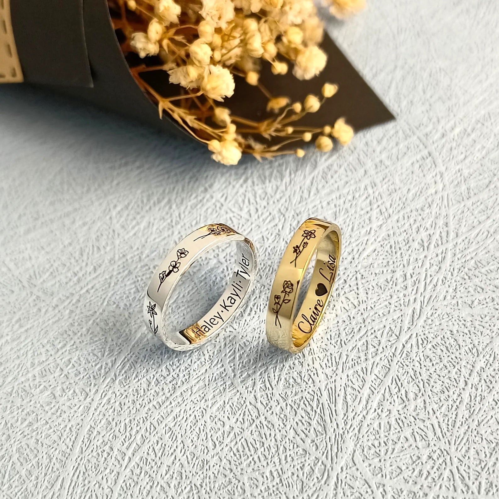 A Custom Birth Flower & Name Ring is a personalized piece of jewelry that combines a birth flower symbol, representing the month of someone's birth, with their name or initials. This unique and meaningful ring serves as a thoughtful gift, capturing personal significance and celebrating individuality.