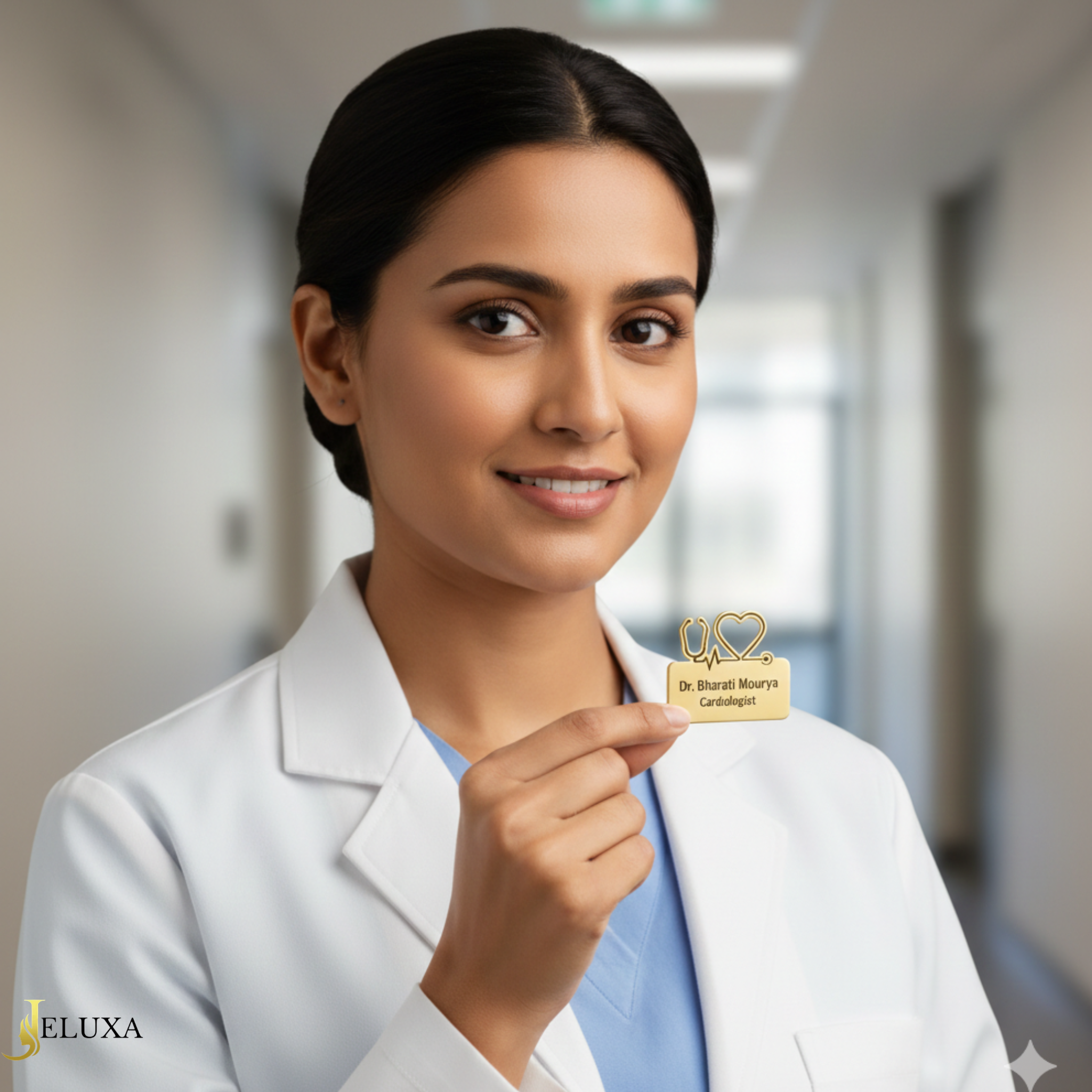 Add a professional and personal touch to your medical attire with this elegant custom doctor name badge. Featuring a beautifully crafted stethoscope and heartbeat design, this badge is personalized with your name and specialization for a refined look. Made with high-quality metal and a smooth finish, it’s perfect for daily hospital wear, clinics, or as a thoughtful gift for doctors and medical professionals. Stylish, durable, and uniquely yours.