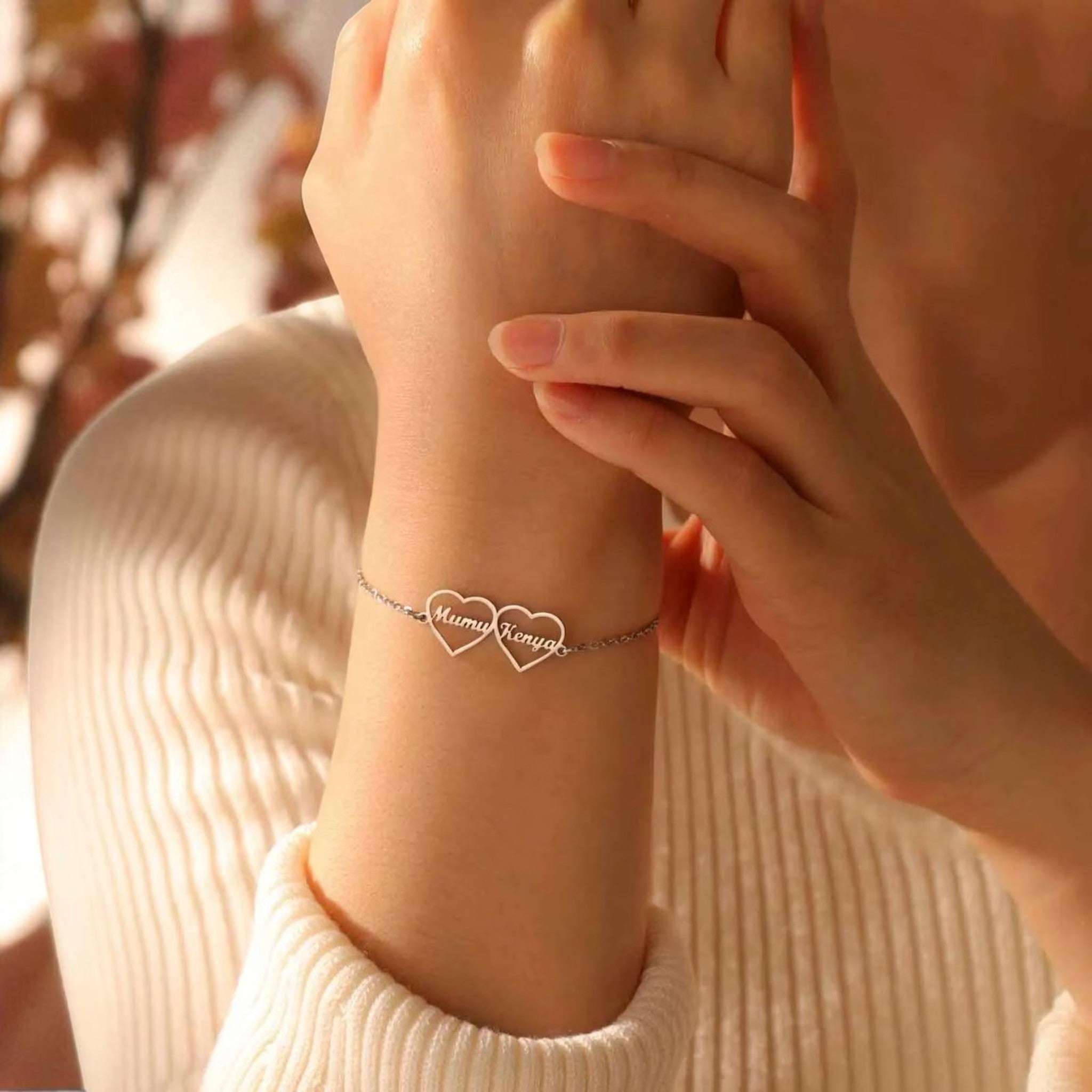 Thank you so much for choosing JELUXA! We poured our heart into crafting this special Double Heart Name Bracelet, and we are thrilled that it will now carry your most cherished names and memories. This piece is more than just jewelry—it’s a constant reminder of the love that connects you.