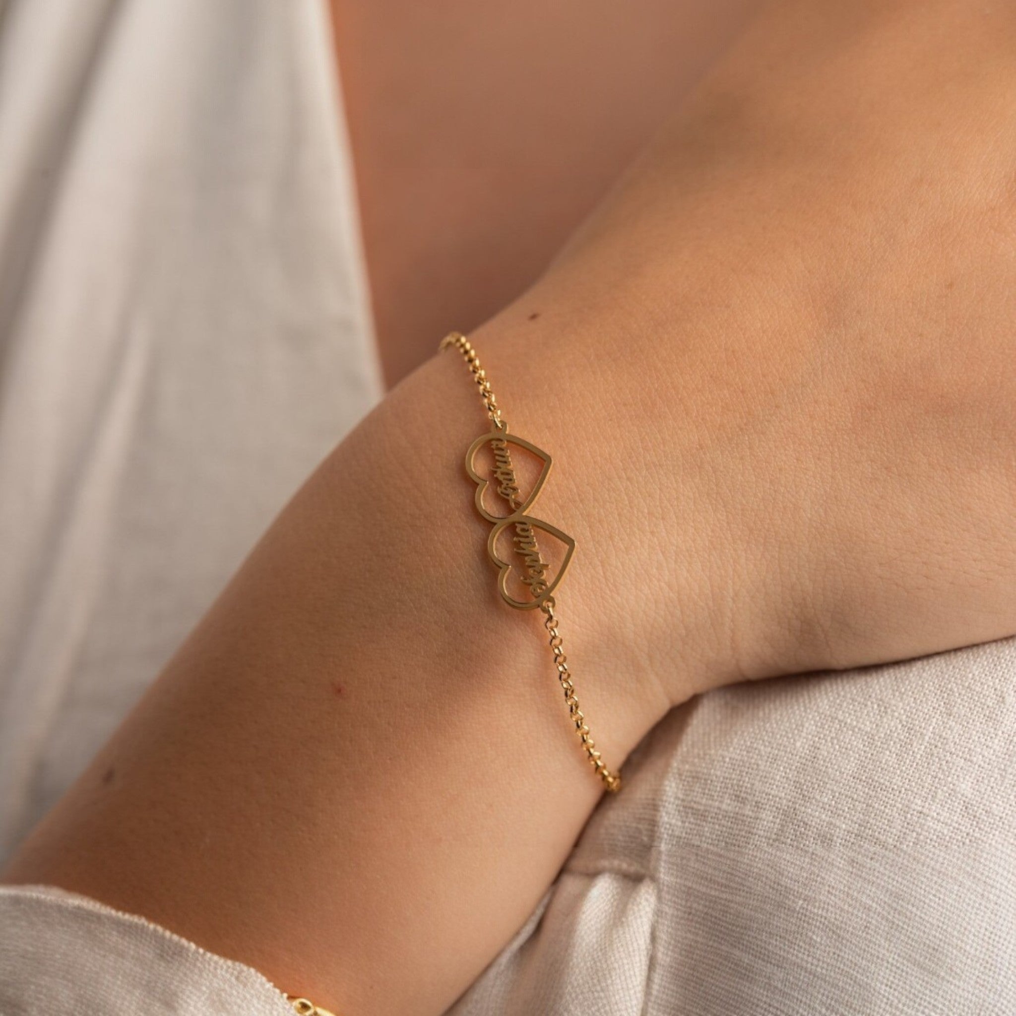 Personalized Double Heart Name Bracelet