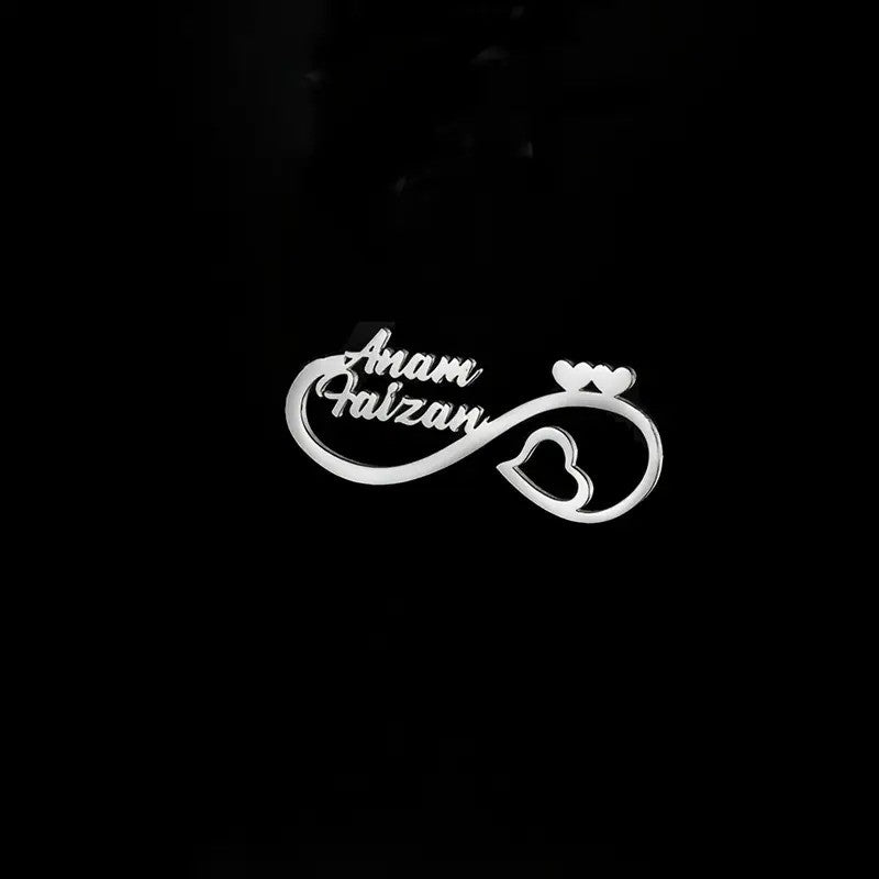 "Show off your unique style with our Custom Double Name Heart Brooch – a perfect blend of love and personalization! Add your names for a truly special, one-of-a-kind accessory."