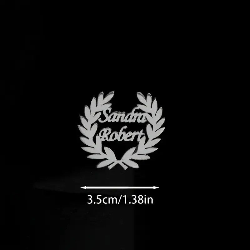 The Custom Dual Name Olive Branch Brooch is a beautifully designed accessory featuring two personalized names intertwined with delicate olive branches. Symbolizing peace, unity, and strength, this custom brooch makes a meaningful and unique gift, perfect for special occasions or as a cherished keepsake.