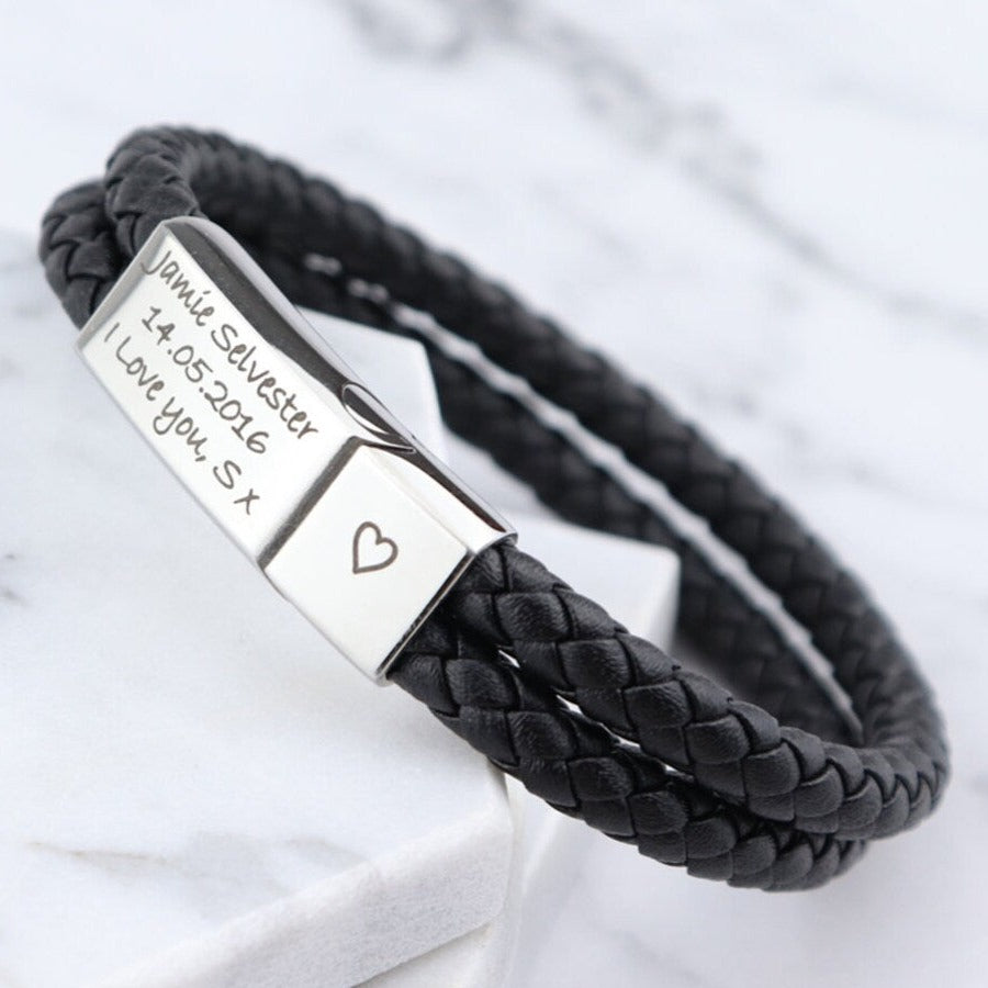 Custom engraved leather bracelets for men are stylish, personalized accessories that combine rugged durability with a unique touch. Made from high-quality leather, each bracelet can be engraved with initials, names, or meaningful symbols, making it a perfect gift or personal statement piece.