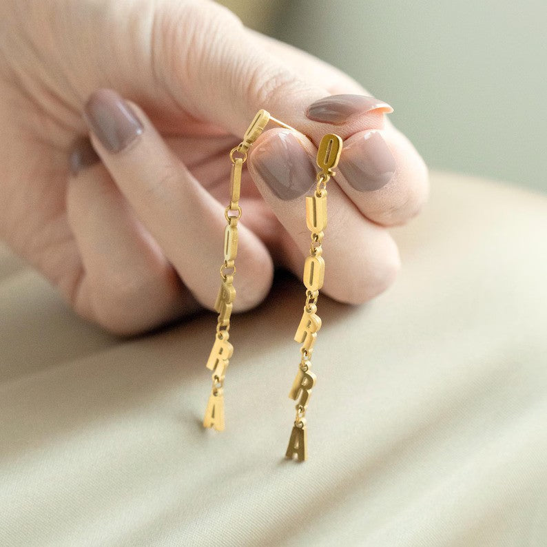 The Custom Long Name Earring is a statement piece that combines elegance and personalization. Featuring a sleek design, each earring is custom engraved with a name or word of your choice, creating a unique and meaningful accessory. Perfect for adding a personal touch to any look.