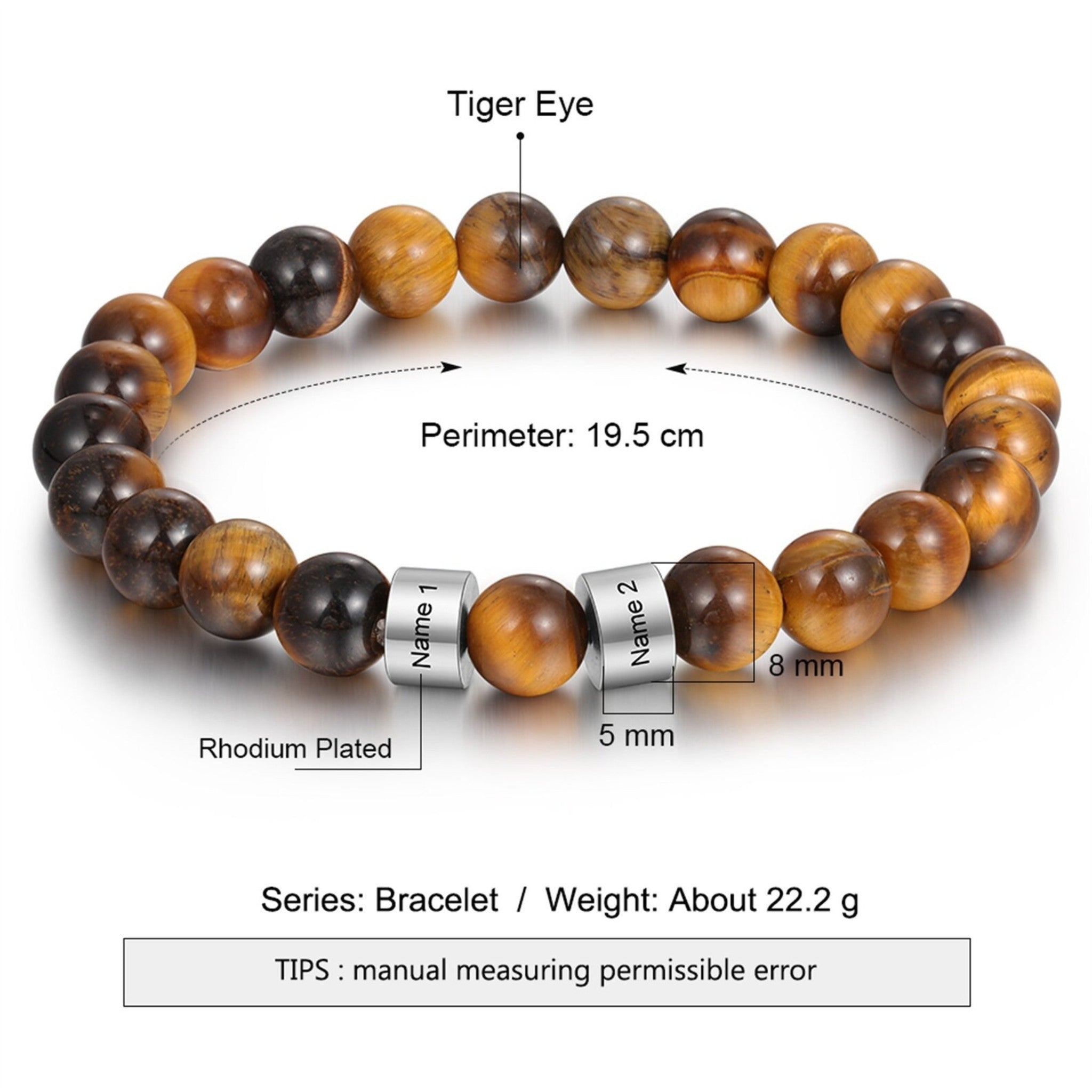 🟤 Personalized Tiger Eye Beaded Bracelet – Strength, Style & Meaning