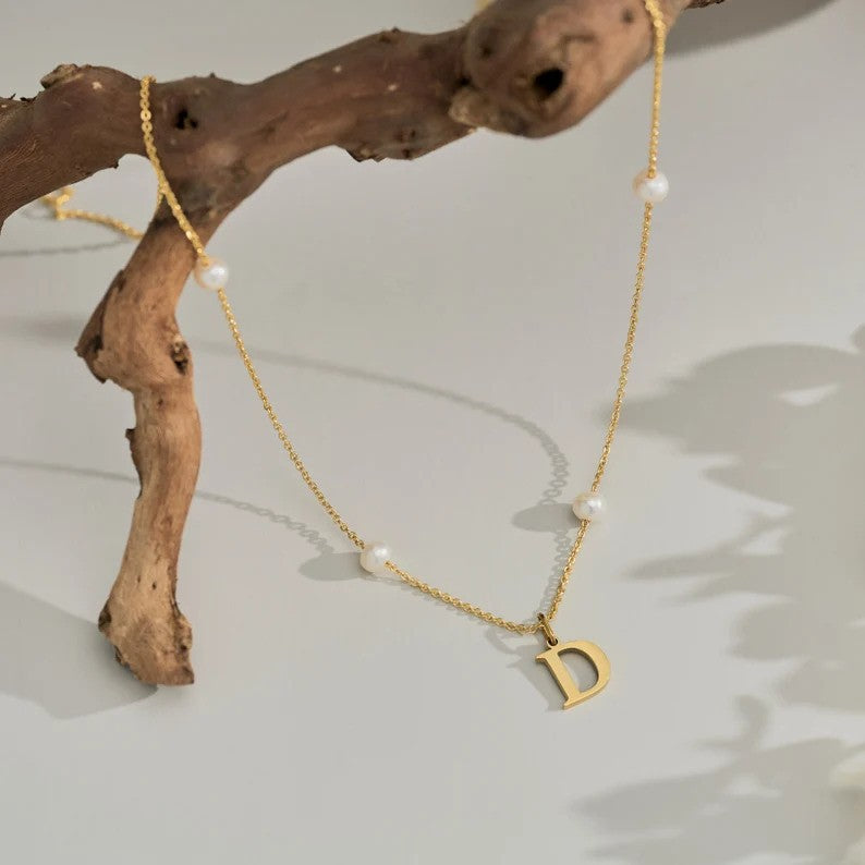 This Custom Pearl Initial Necklace combines elegance with personalization. Featuring a delicate string of lustrous pearls, it is adorned with a custom initial pendant, making it a perfect, meaningful accessory for any occasion. A timeless piece that adds a personal touch to your jewelry collection.