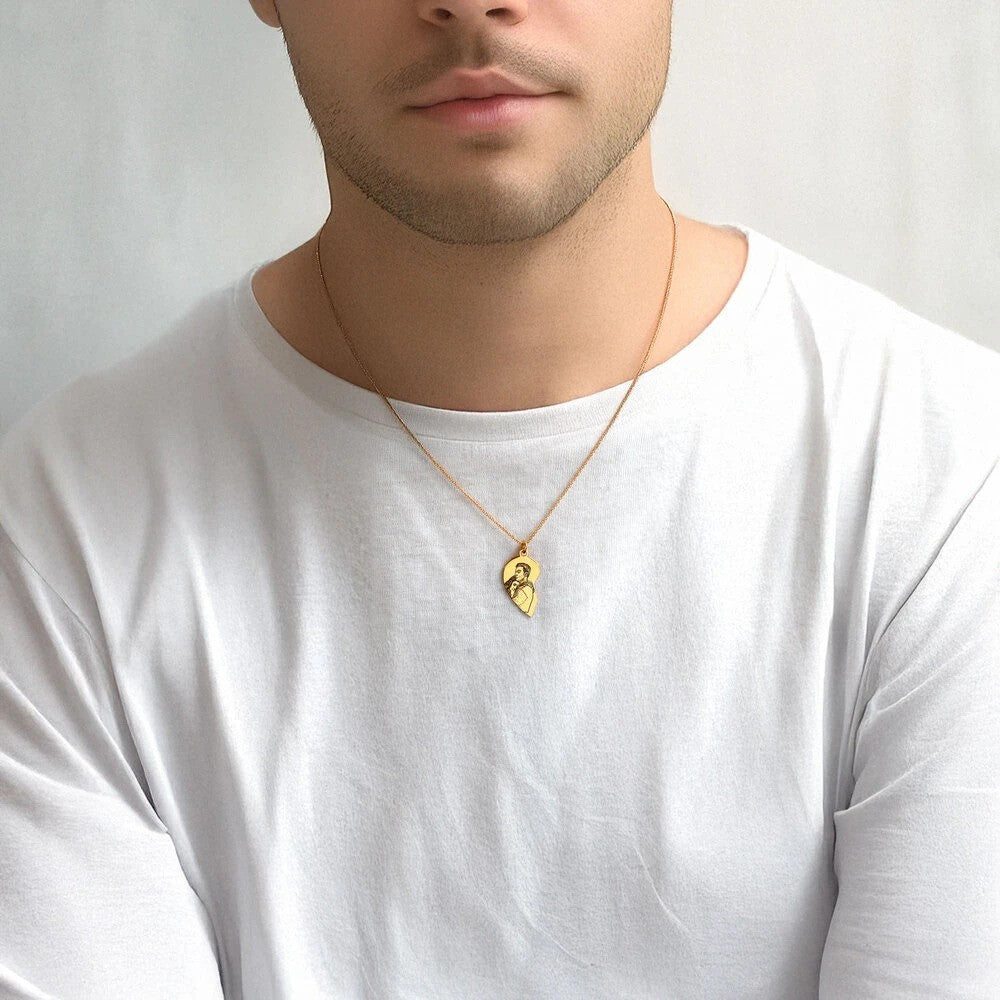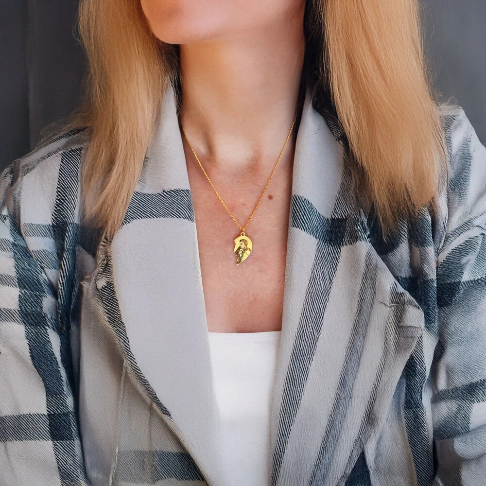 The Custom Photo Heart Couple Necklace is a personalized heart-shaped pendant that holds a photo, making it a meaningful and romantic gift for couples.