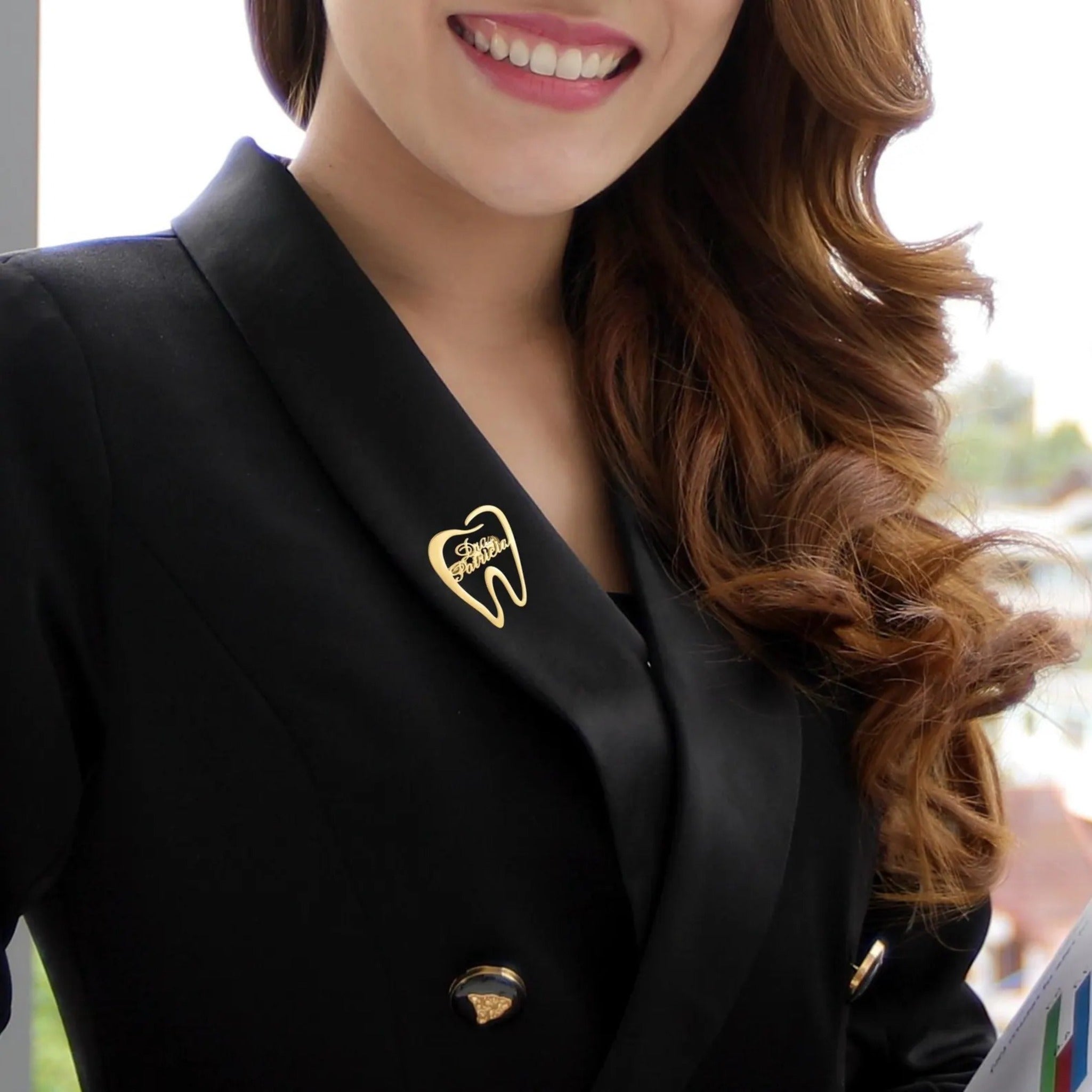 A charming and customizable tooth-shaped brooch, designed specifically for dentists. This cute accessory adds a personal touch to your professional attire while showcasing your passion for dentistry. Perfect for dental professionals who want to add a fun, unique flair to their workday!