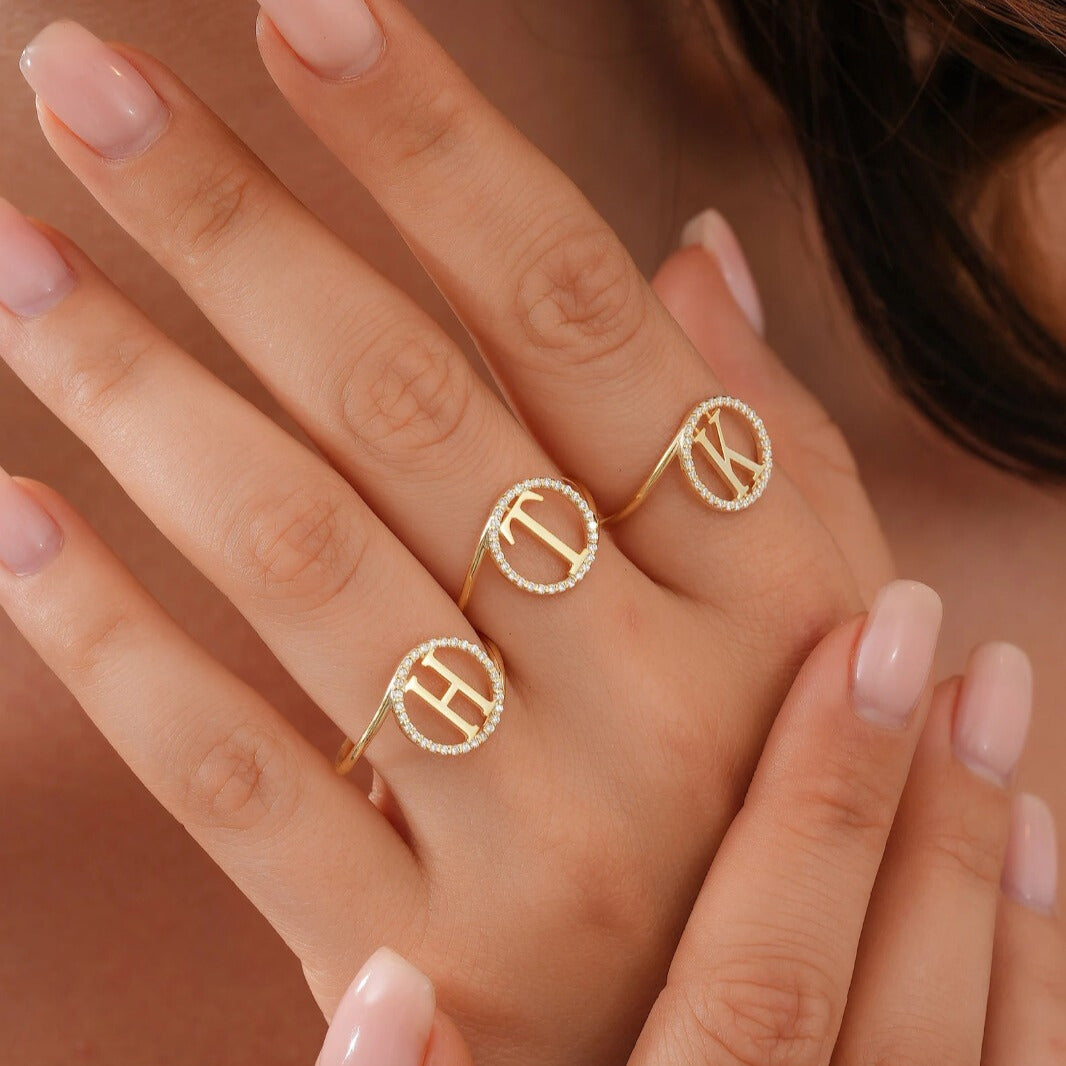 The Personalized Dainty Initial Diamond Ring is a delicate, customizable piece of jewelry featuring a single diamond and an engraved initial of your choice. Its minimalist design makes it a perfect, elegant accessory for daily wear or a thoughtful gift for a loved one.