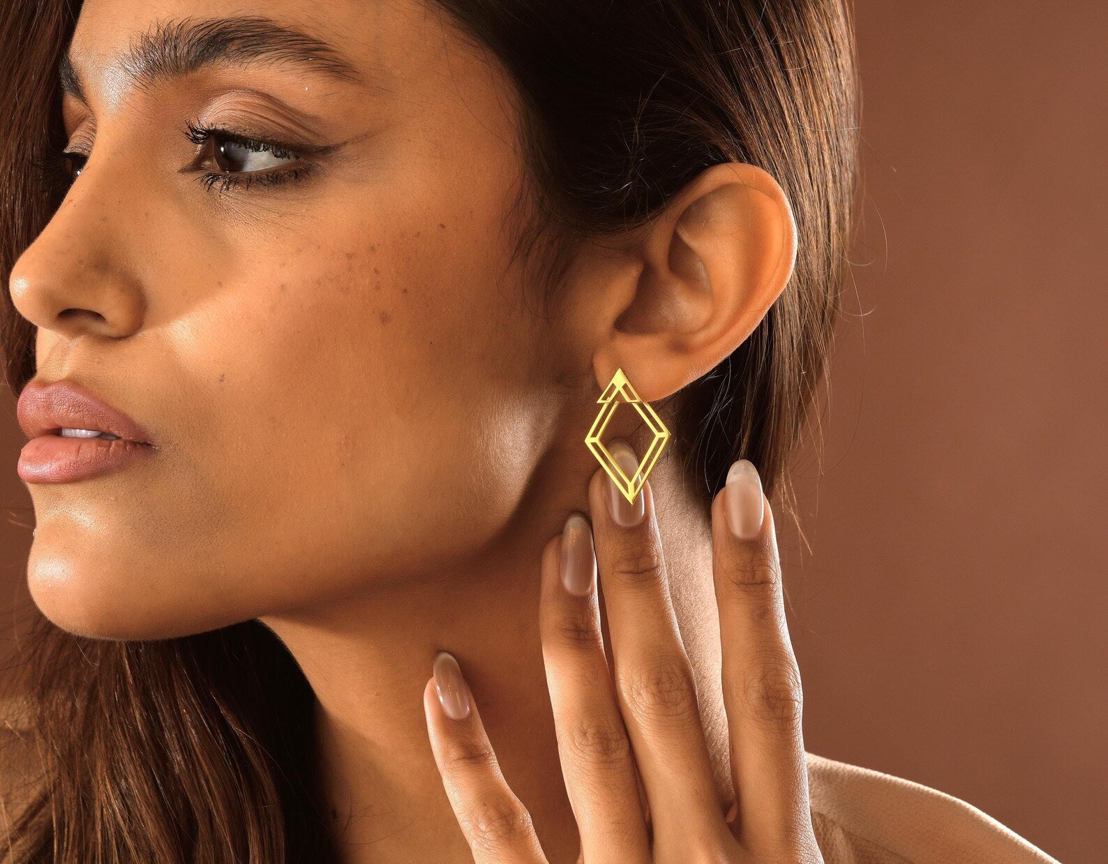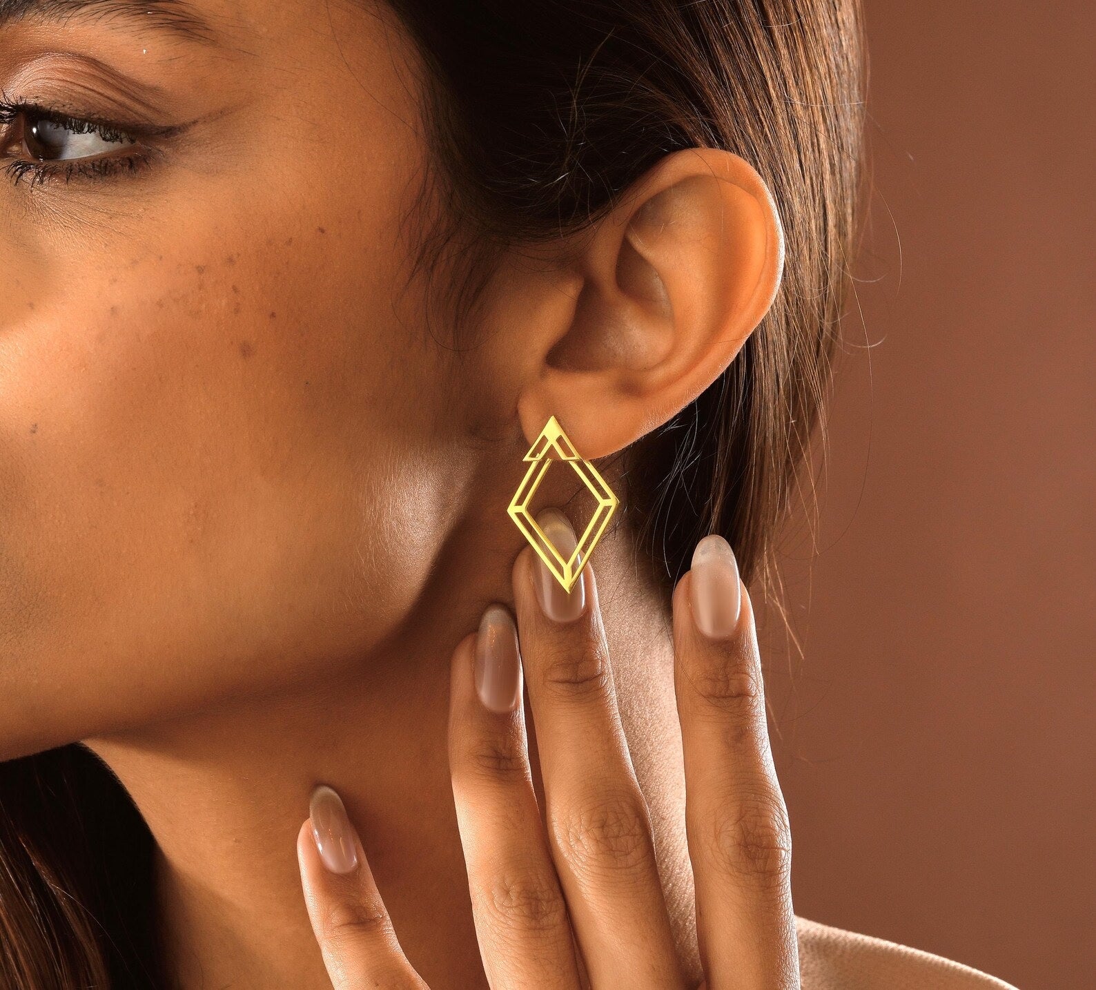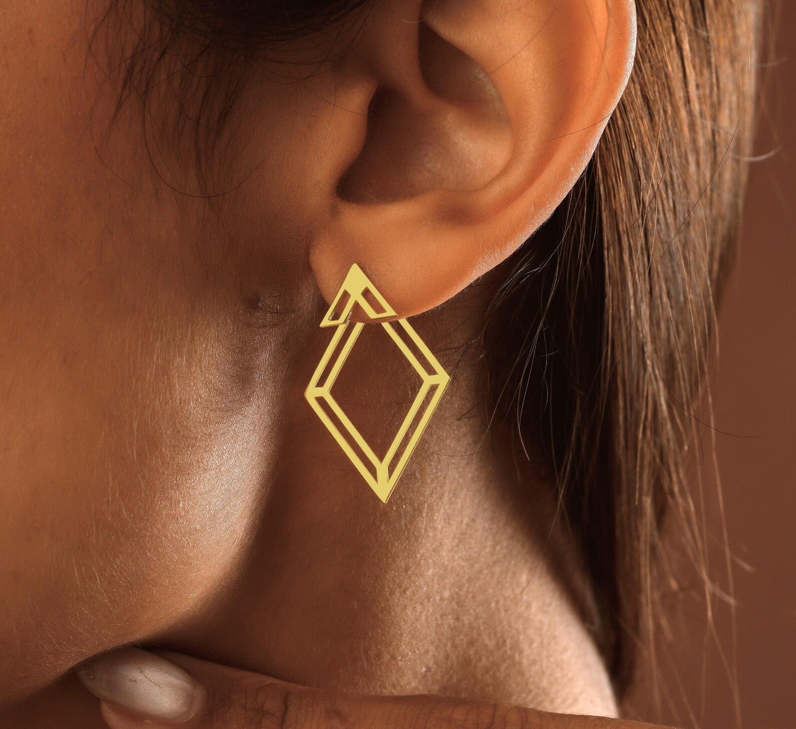 Elegant and modern, these 18K Gold Ear Jacket Rhombus Earrings feature a sleek geometric design, perfect for adding a touch of sophistication to any look. Lightweight and dainty, they make an ideal gift for weddings, bridesmaids, or any special occasion. A timeless accessory for her collection.✨