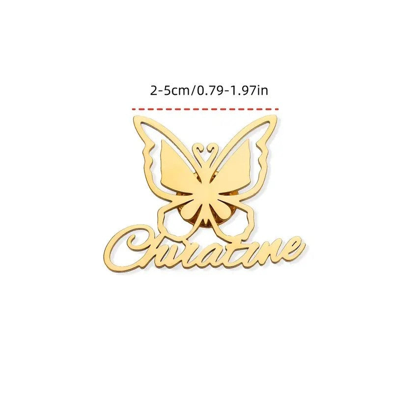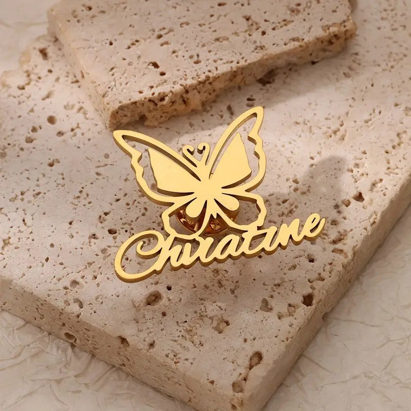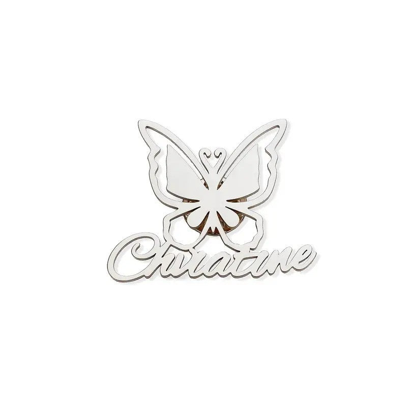 An elegant custom butterfly brooch featuring intricate design details, crafted with delicate precision. This brooch is adorned with sparkling gemstones, capturing the essence of nature's beauty. The English name "Graceful Wings" is elegantly inscribed, adding a personalized touch to this timeless accessory, perfect for adding a refined and sophisticated touch to any outfit.