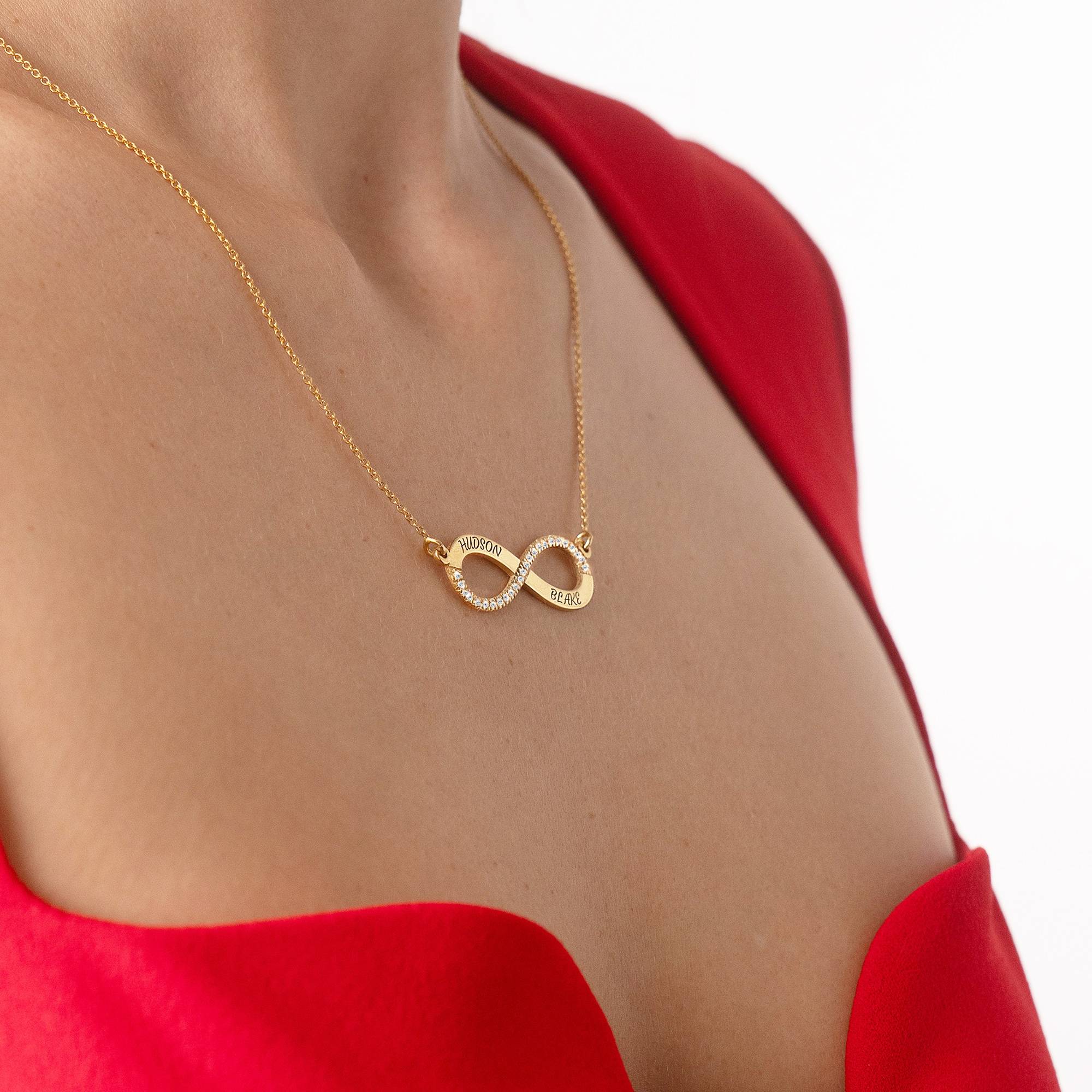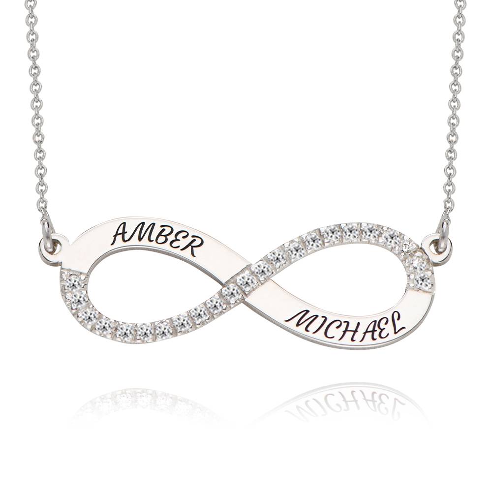 The Personalized Name Engraved Infinity Necklace with Diamonds is a timeless and elegant piece of jewelry that features a beautifully crafted infinity symbol, custom-engraved with your chosen name. Adorned with sparkling diamonds, this necklace adds a touch of sophistication and sentimental value, making it a perfect gift for a loved one or a special treat for yourself.