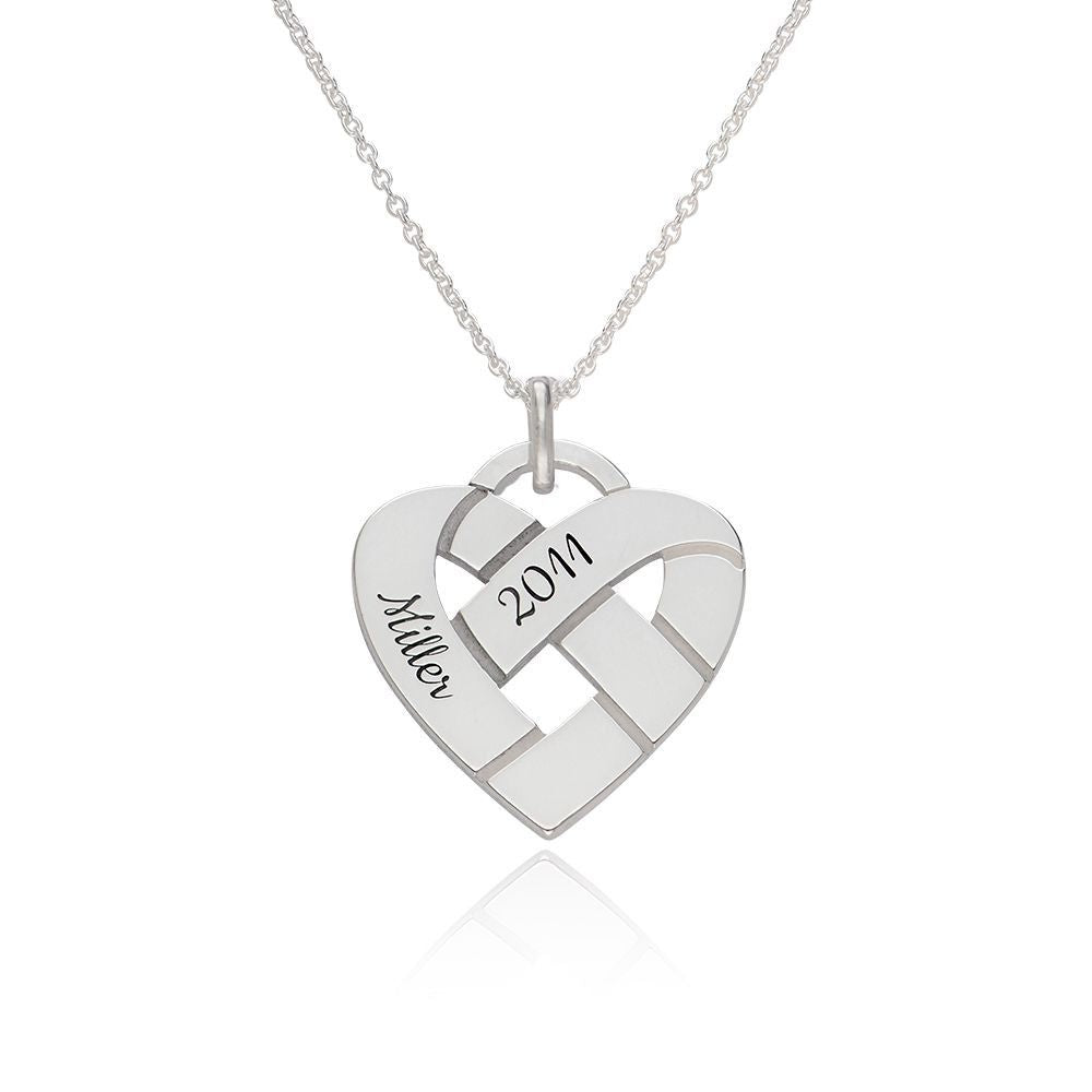 This Custom Heart Knot Necklace in Sterling Silver features an elegant design that intertwines a heart and knot symbol, representing love and unity. Crafted from high-quality sterling silver, it offers a timeless, personalized touch, making it a meaningful gift or keepsake for any occasion.