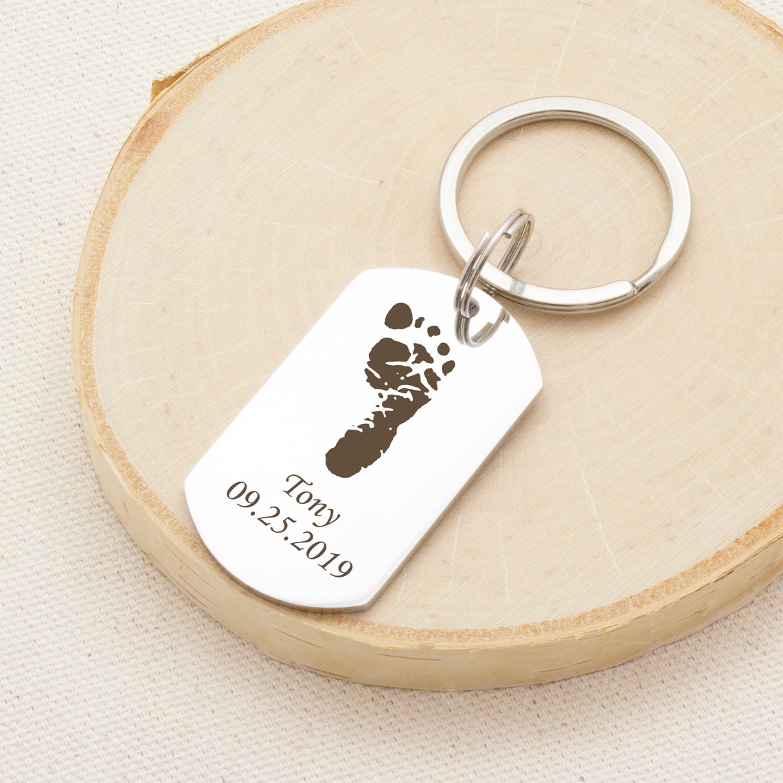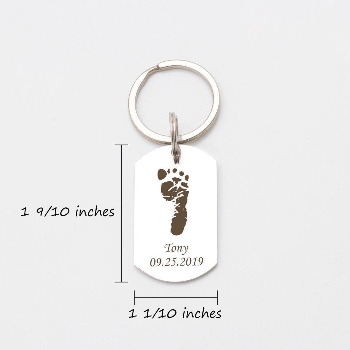 A Custom Baby Footprint Keychain is a heartwarming, personalized accessory that features an engraved imprint of your baby's footprint. It’s a special keepsake that allows parents to carry a little piece of their newborn’s memory with them, making it a thoughtful gift or cherished memento for any parent or grandparent.