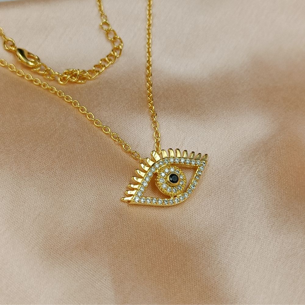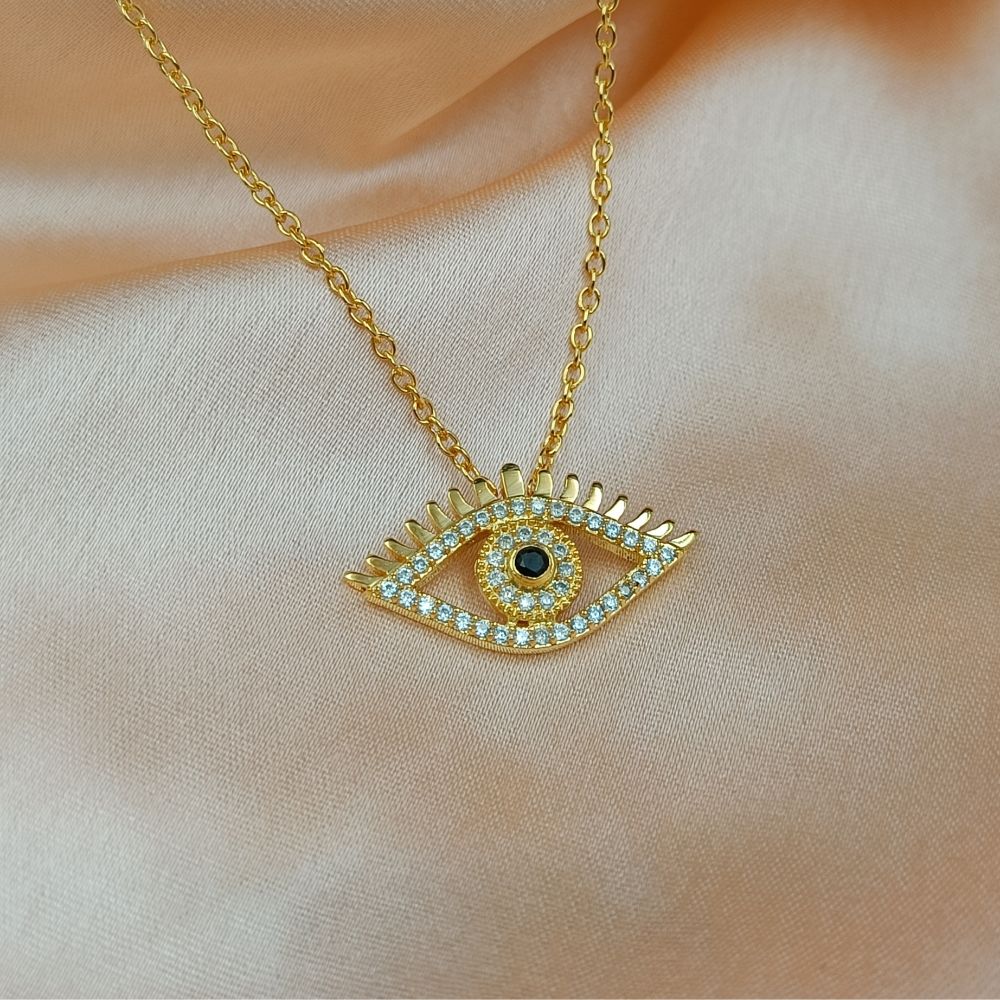 The Stylish 18K Gold Plated Evil Eye Necklace for girls features a trendy and protective design with a shimmering 18K gold plating. The eye-catching evil eye pendant adds a touch of charm and symbolizes protection, making it a perfect accessory for everyday wear or special occasions.