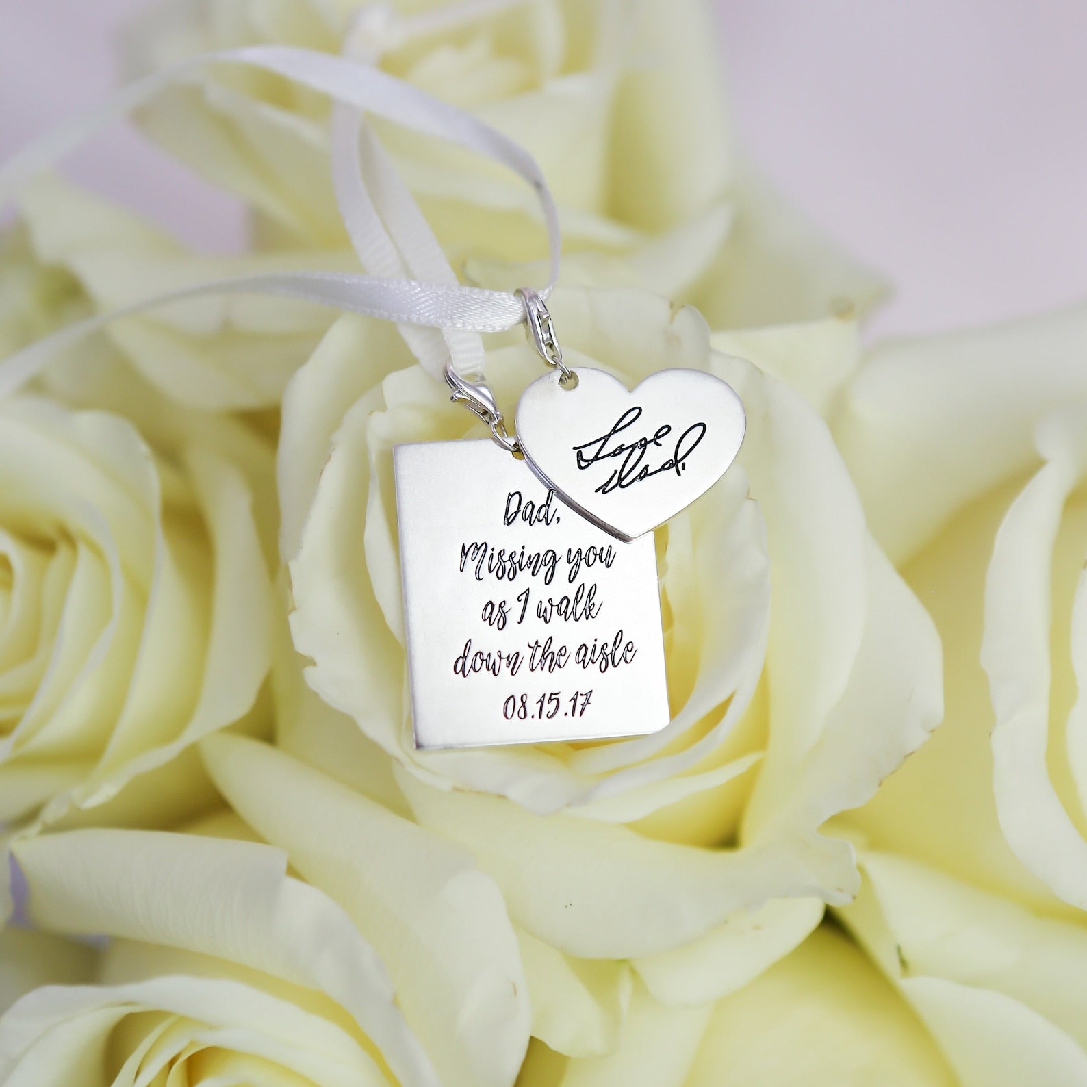 The Handwriting Bouquet Charm is a heartfelt piece that features a custom engraving of a loved one's handwriting, delicately paired with a bouquet design. A meaningful and personal keepsake, it’s perfect for celebrating special memories or gifting to someone special.