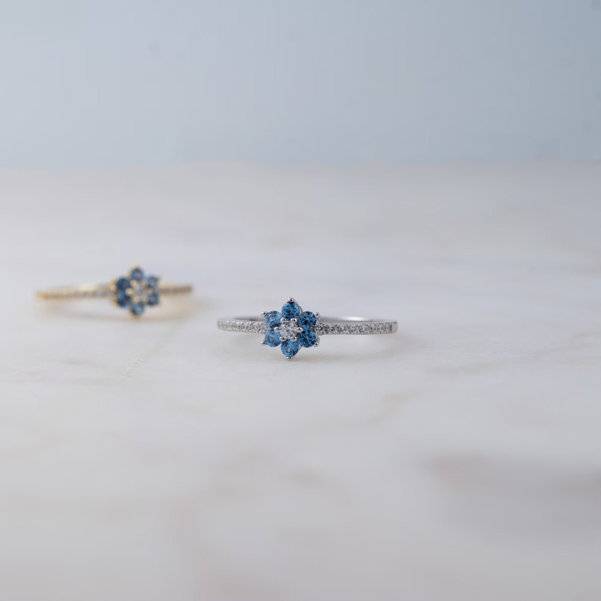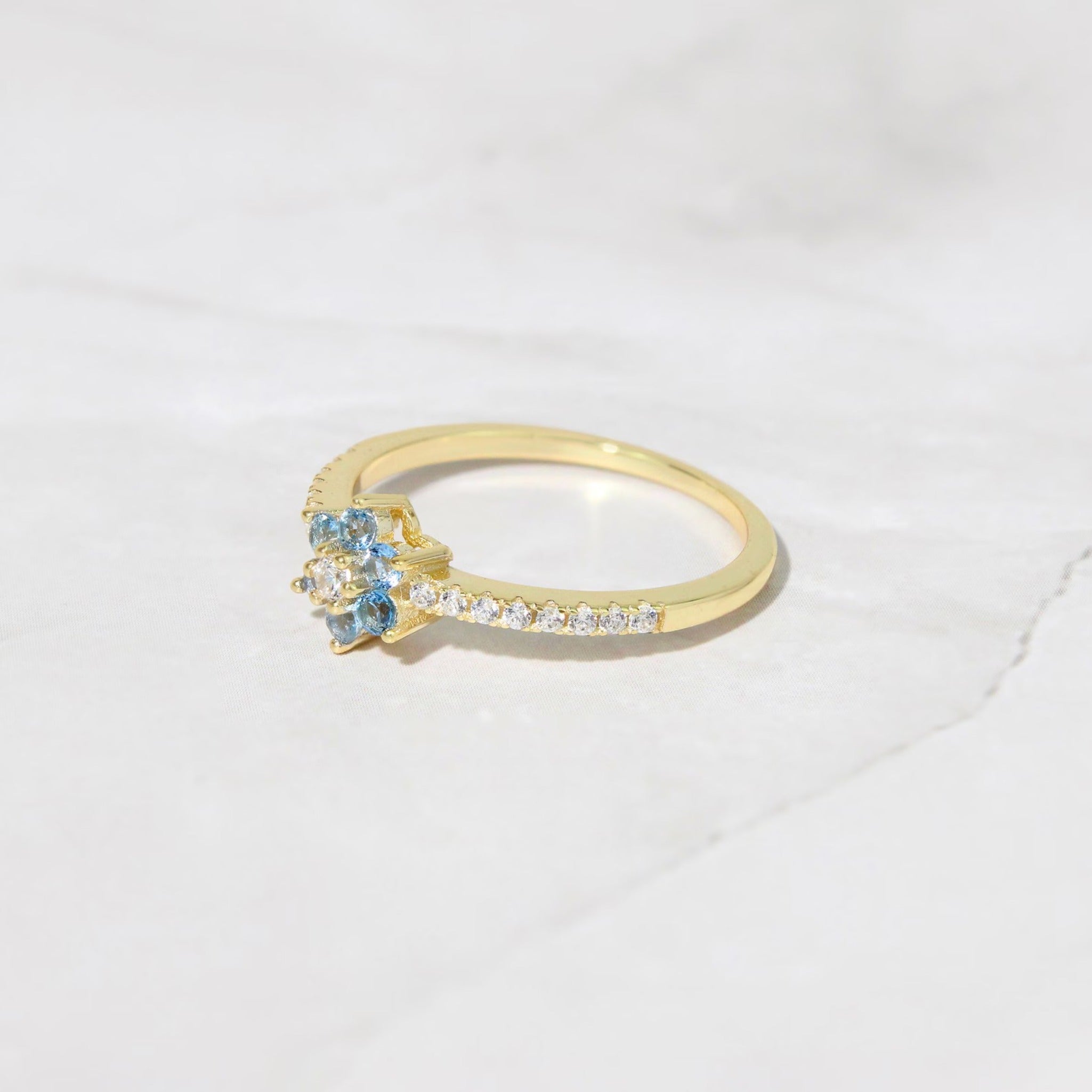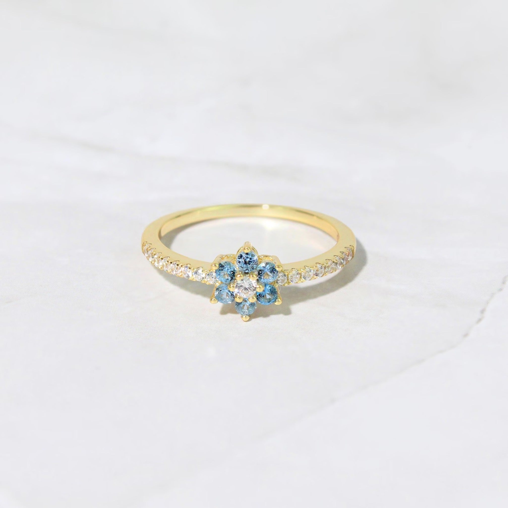 π Jeluxa Blue Blossom Floral CZ Ring β Elegant Gold Plated Sterling Silver