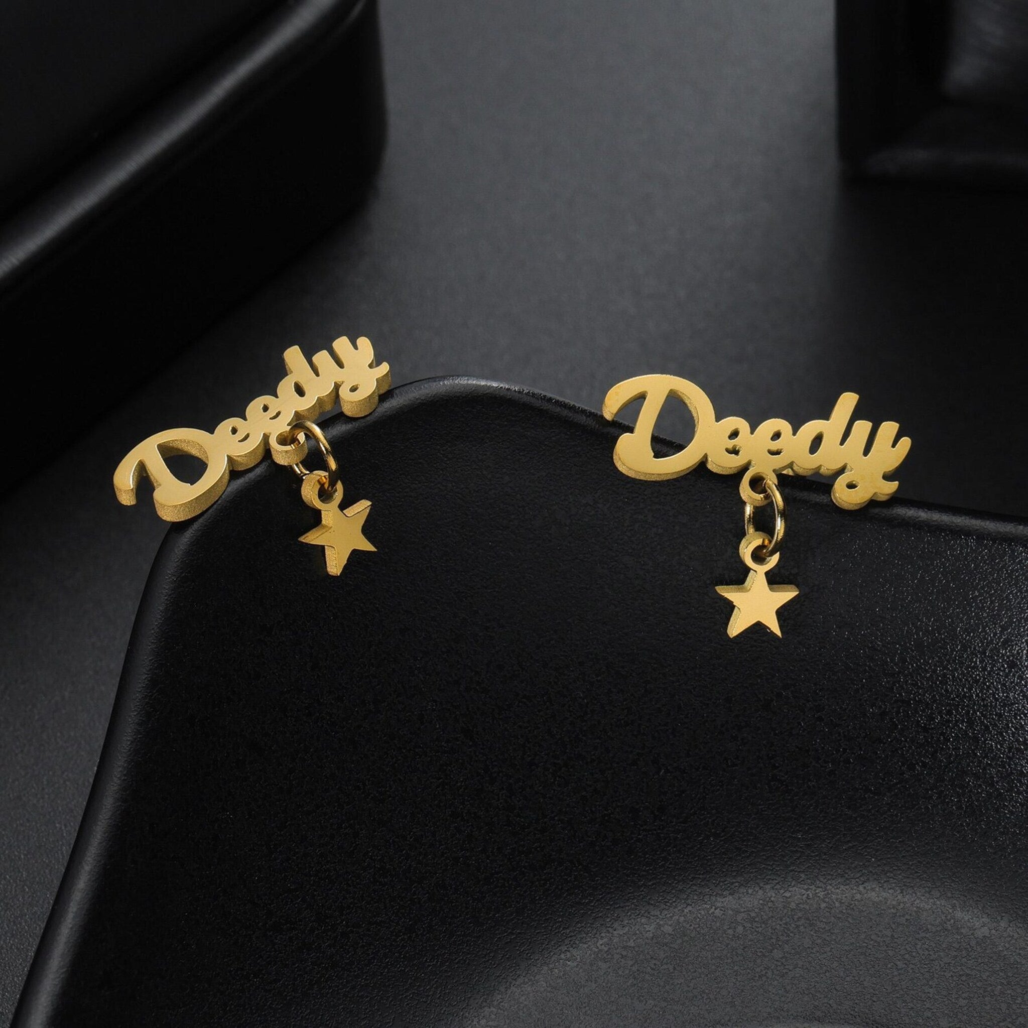 Make every moment special with our custom name star drop earrings. Designed to add a sparkling touch of personality, these earrings beautifully combine a personalized name design with a chic dangling star charm – perfect for everyday wear or special occasions.