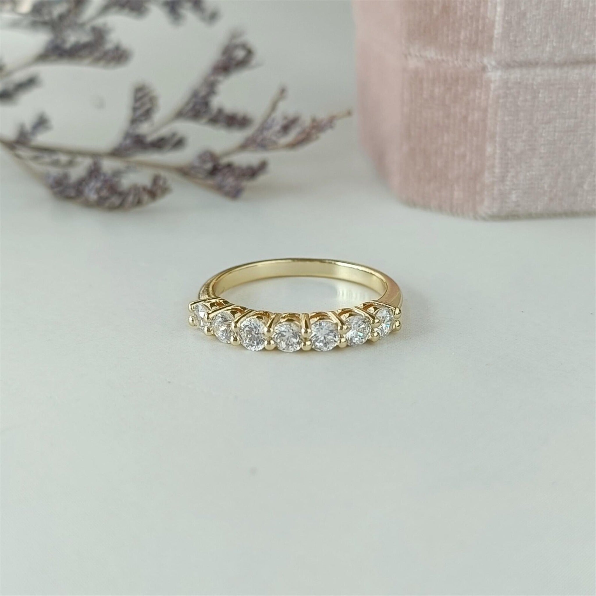 β¨ Jeluxa Dainty Half Eternity Ring β Gold Band with Cubic Zirconia β¨