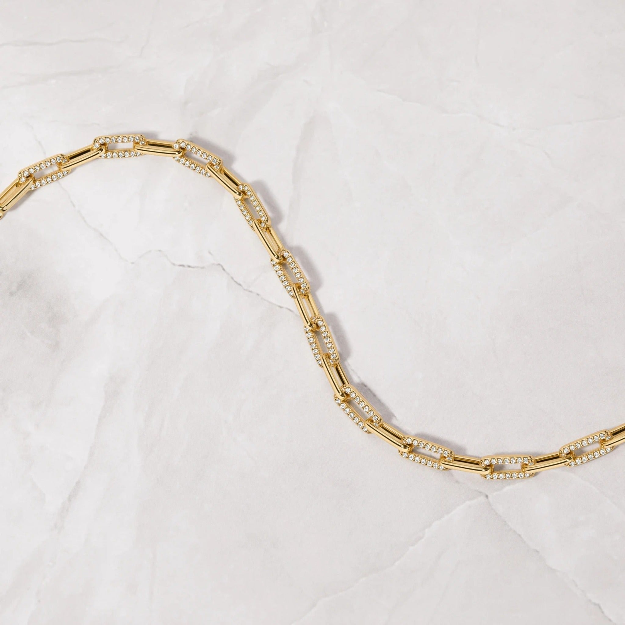 ⛓️ Classic paperclip chain design with CZ stone accents