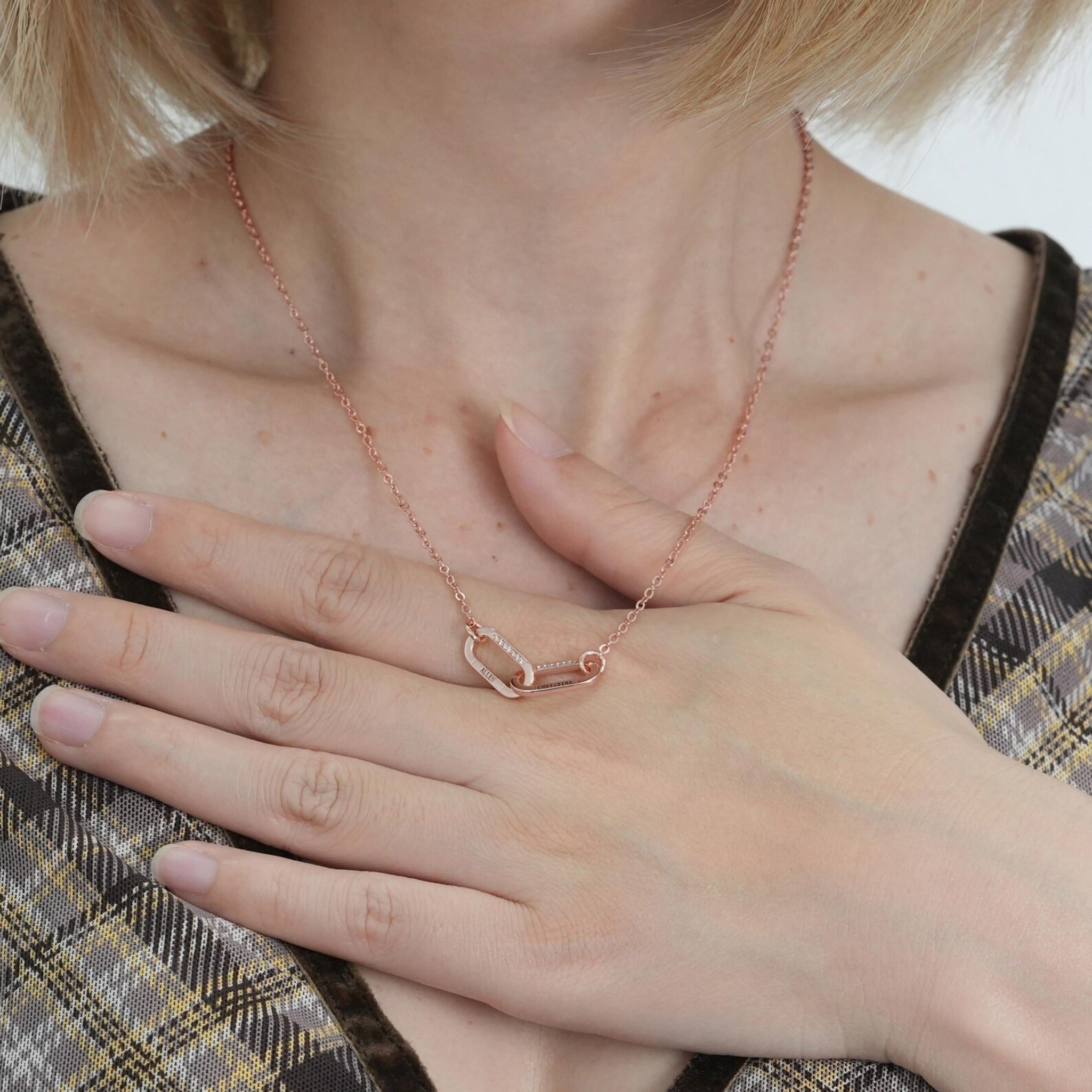 Celebrate π love, π connection, and β¨ individuality with our Personalized Interlocking Name Necklace, beautifully designed to keep your most cherished names close to your heart β€οΈ. The elegant interlocking loops, accented with sparkling π 5A cubic zirconia stones, symbolize unity and everlasting bonds, making it a meaningful gift π for yourself or someone special.