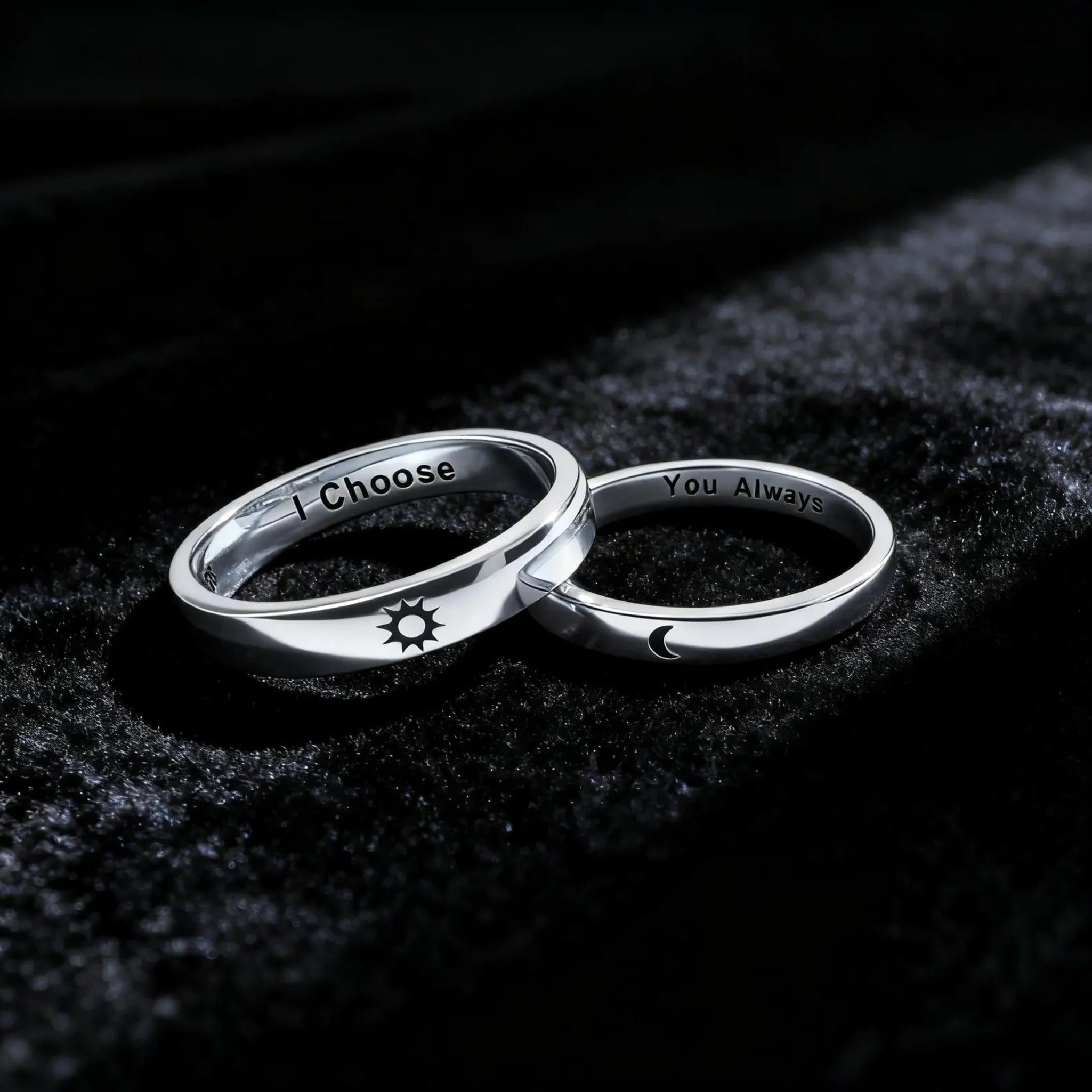 βοΈπ Jeluxa Sun & Moon Couple Rings β βI Choose You Alwaysβ Engraved Matching Bands πβοΈ