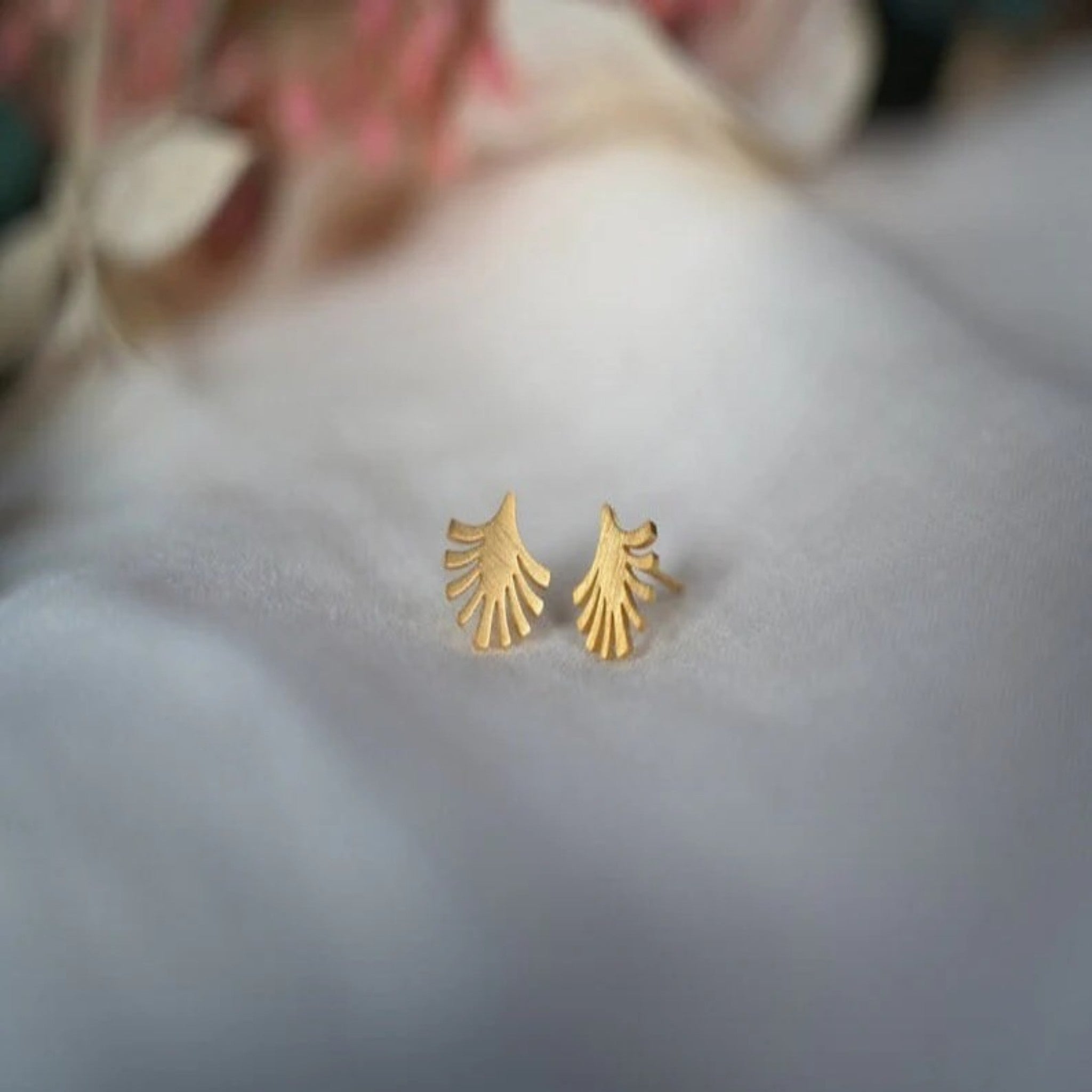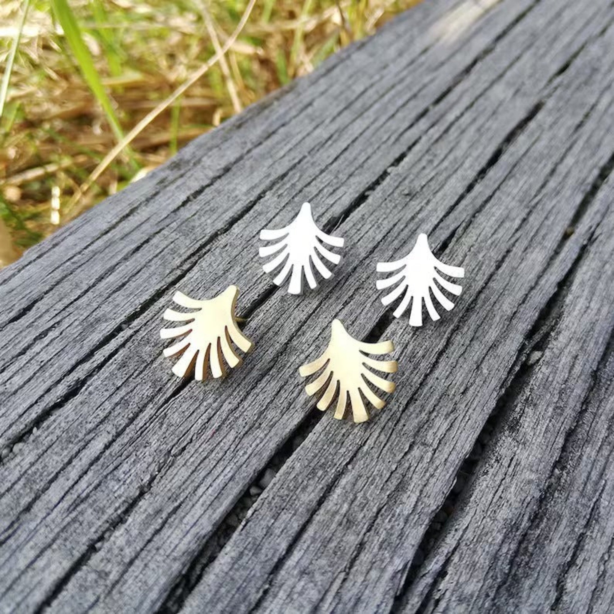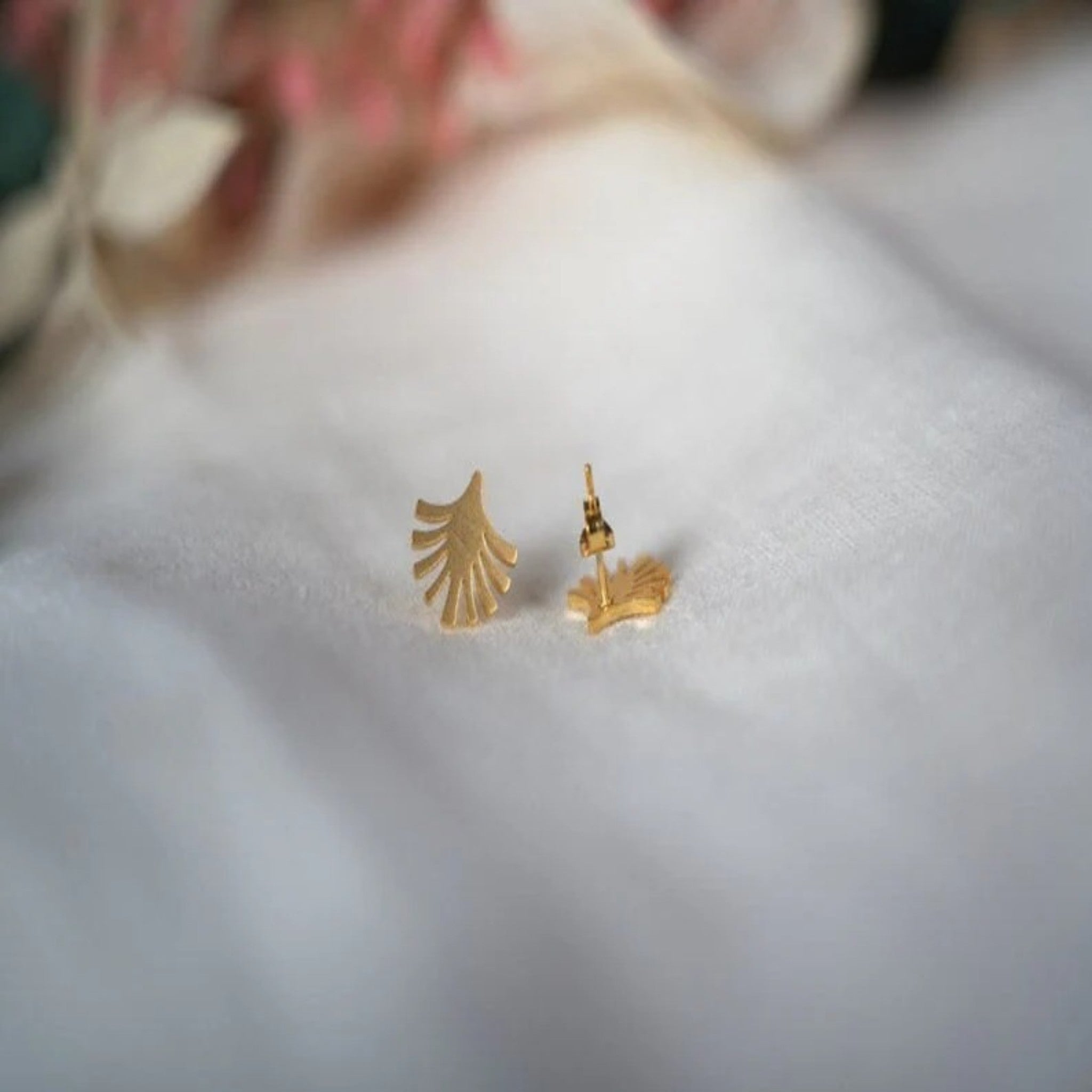 โจ Minimalist Fan Leaf Stud Earrings by Jeluxa โจ