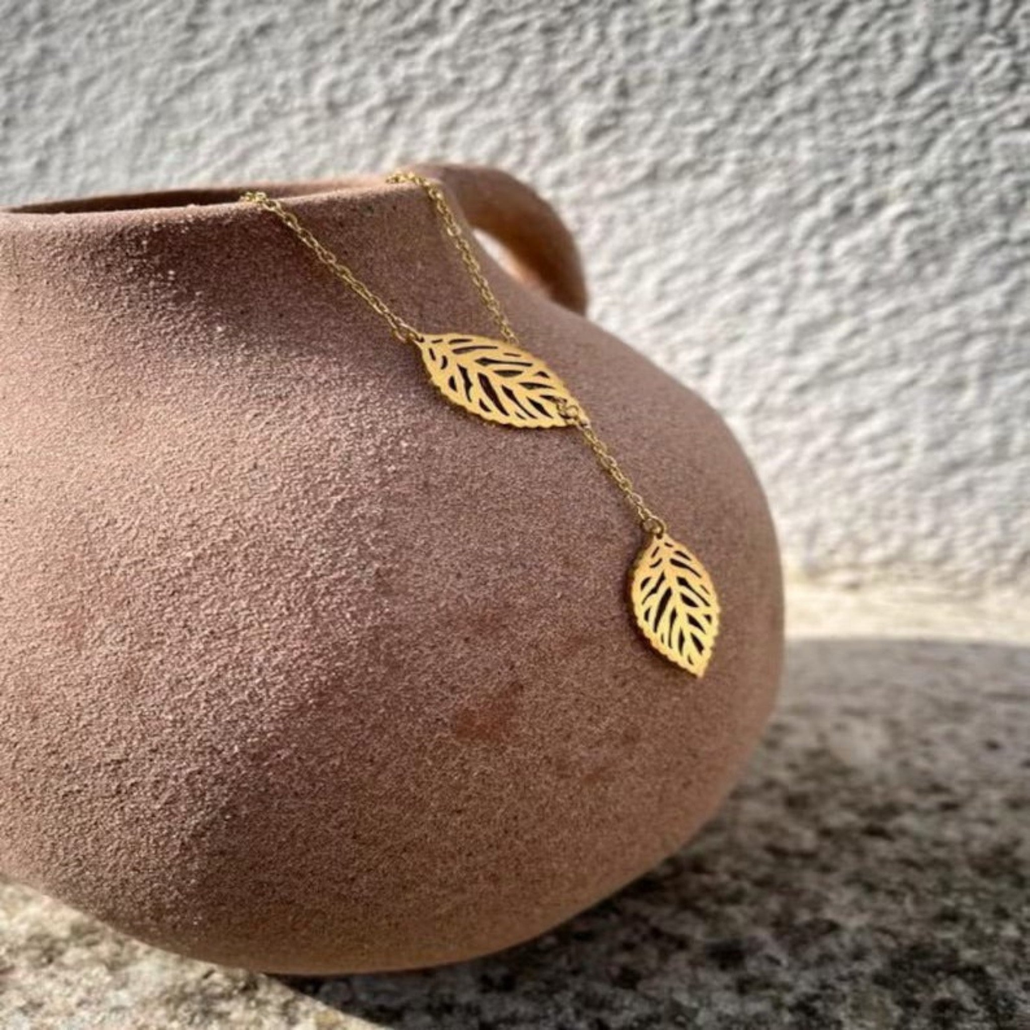๐ Nature-Inspired Double Leaf Necklace by Jeluxa ๐