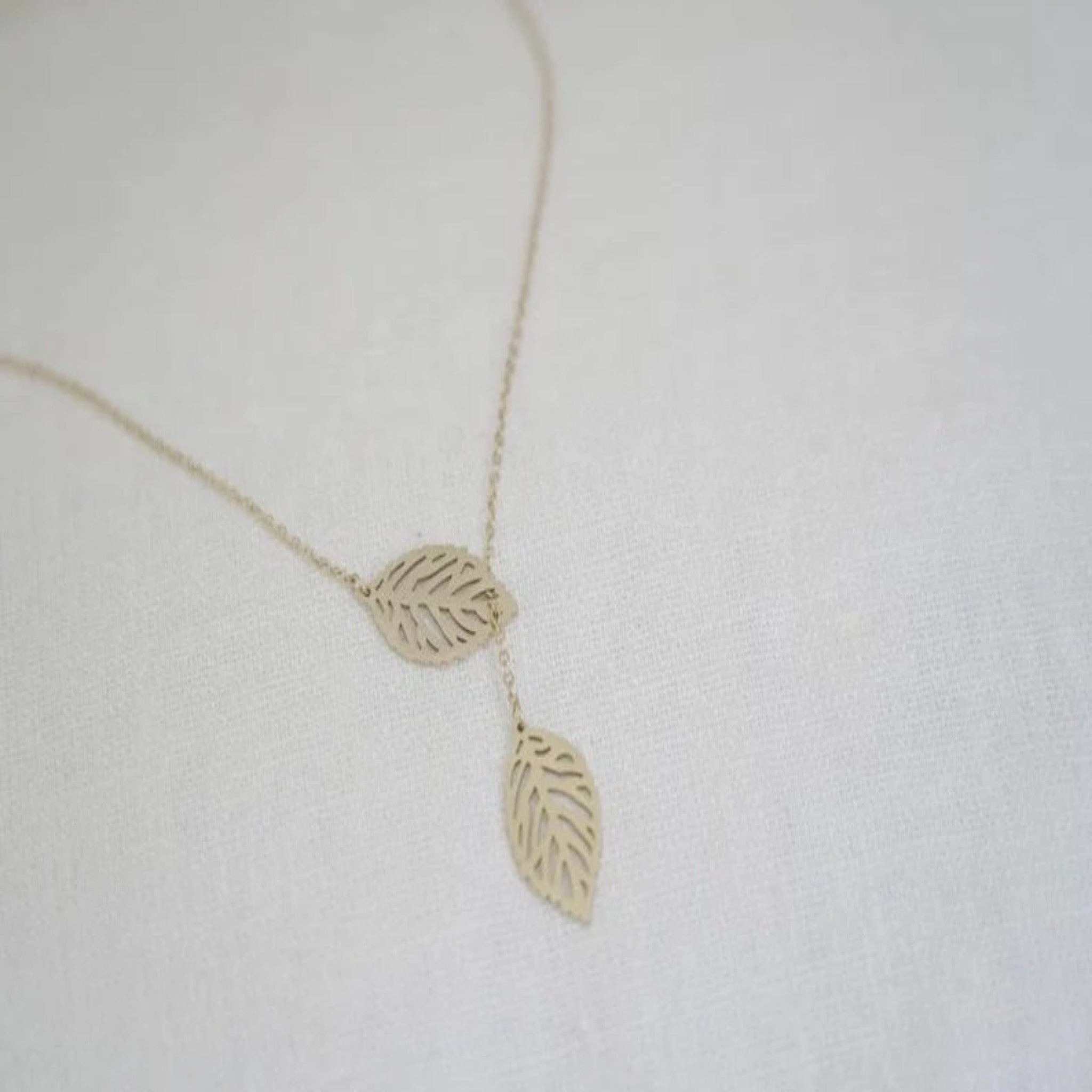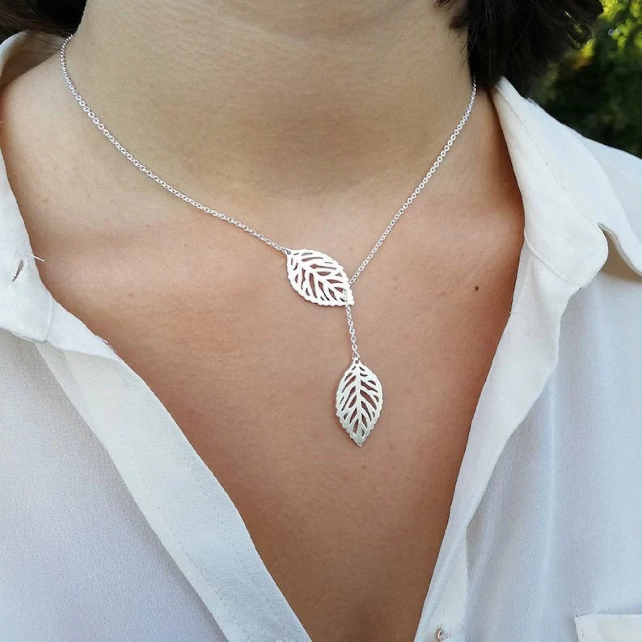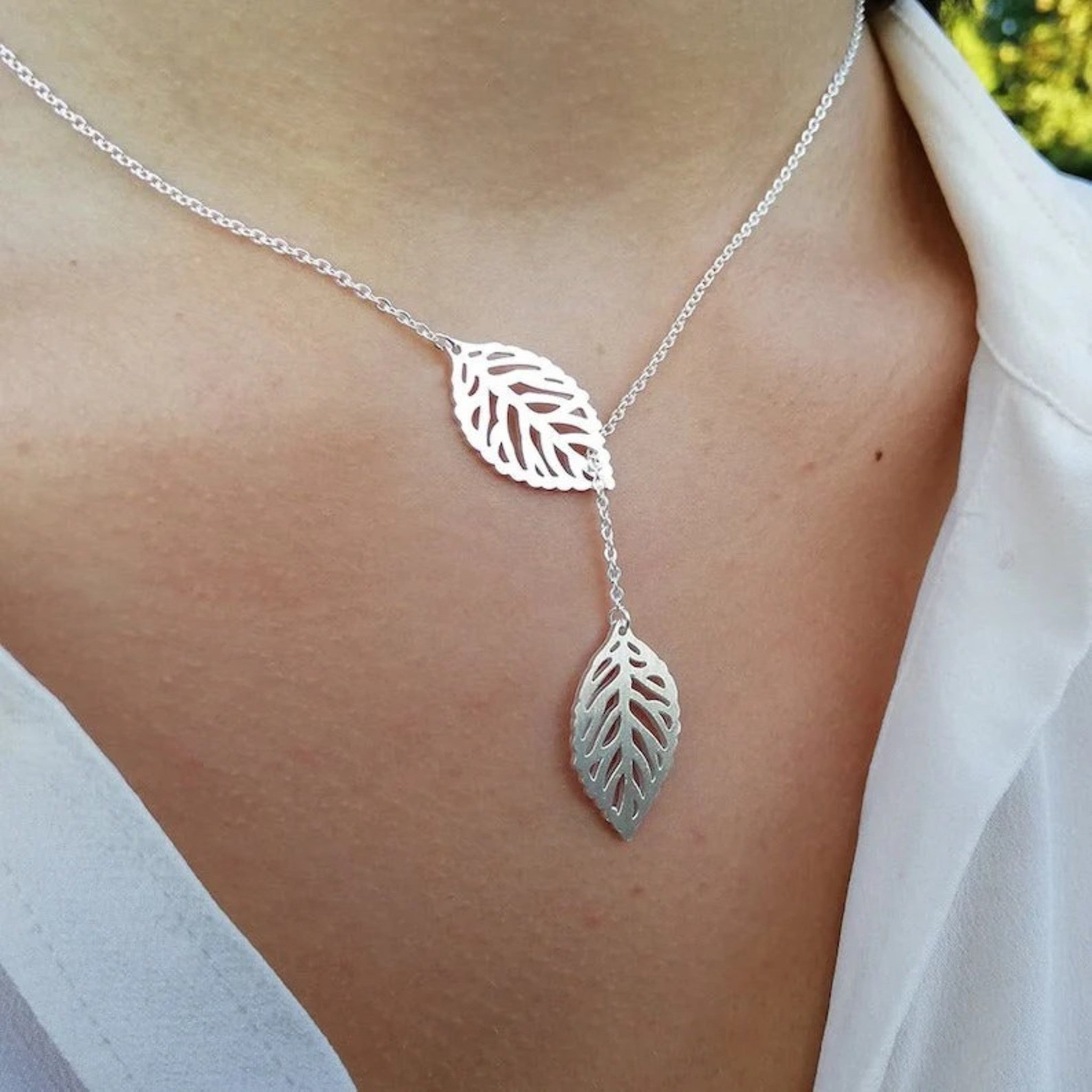 Embrace the elegance of nature with this stunning double leaf Y-necklace, designed to bring out your natural beauty and grace. Crafted with intricate cutout detailing, the two delicate leaves fall gracefully along the neckline, making it perfect for both everyday wear and special occasions. ๐ฟโจ