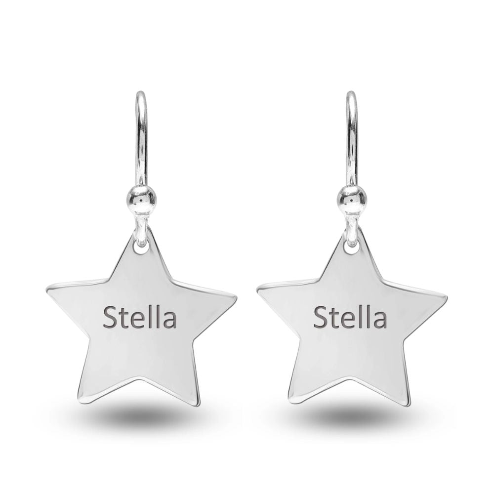 The Personalized Engraved Name Star Earrings are a charming and unique accessory featuring star-shaped pendants, each engraved with a name or special word. Customizable and stylish, these earrings add a personal touch to any outfit, making them a perfect gift or a meaningful statement piece.
