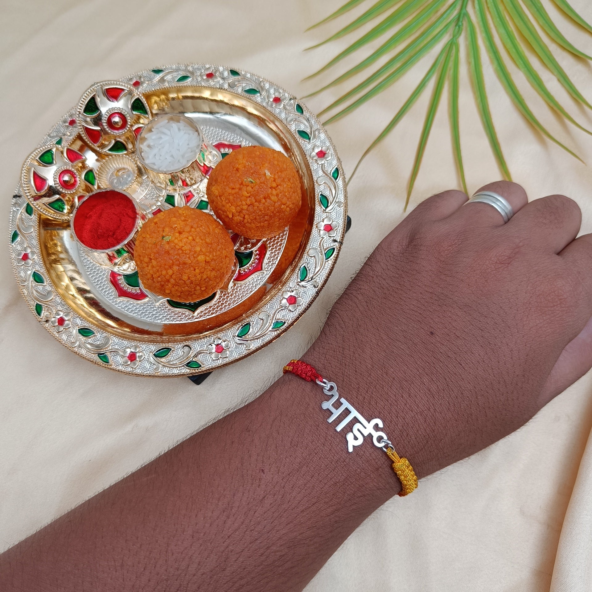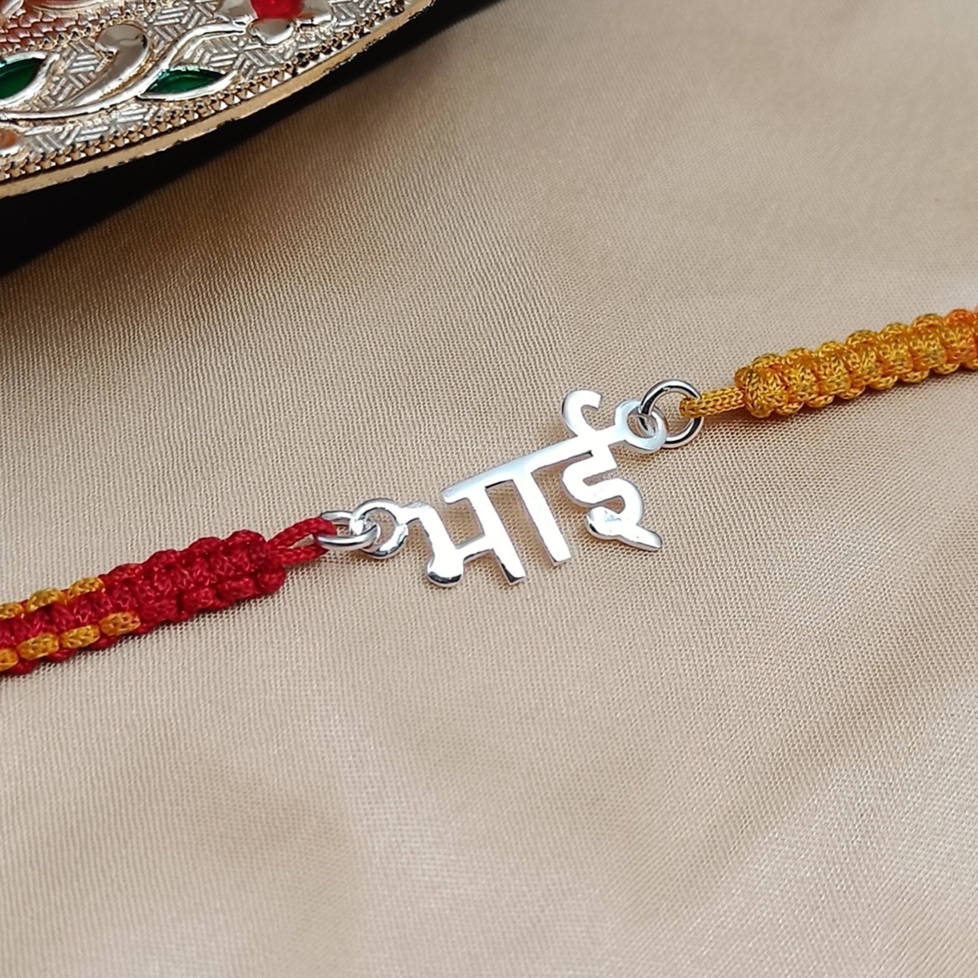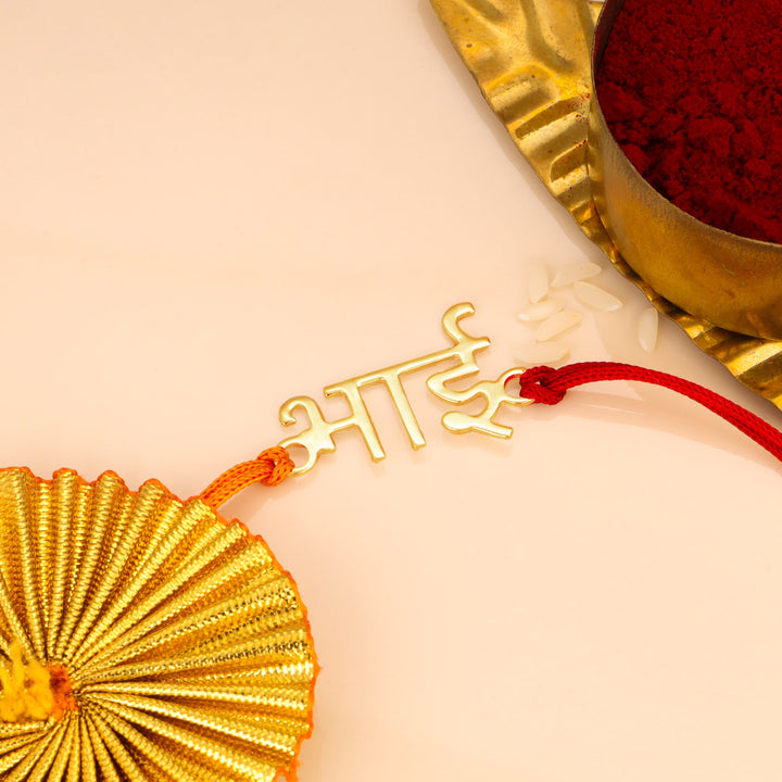 The Hindi Bhai Name Rakhi is a beautifully crafted rakhi featuring your brother's name in elegant Hindi script. This personalized touch adds a traditional and sentimental feel to Raksha Bandhan, making it a meaningful gift to celebrate the bond between siblings.
