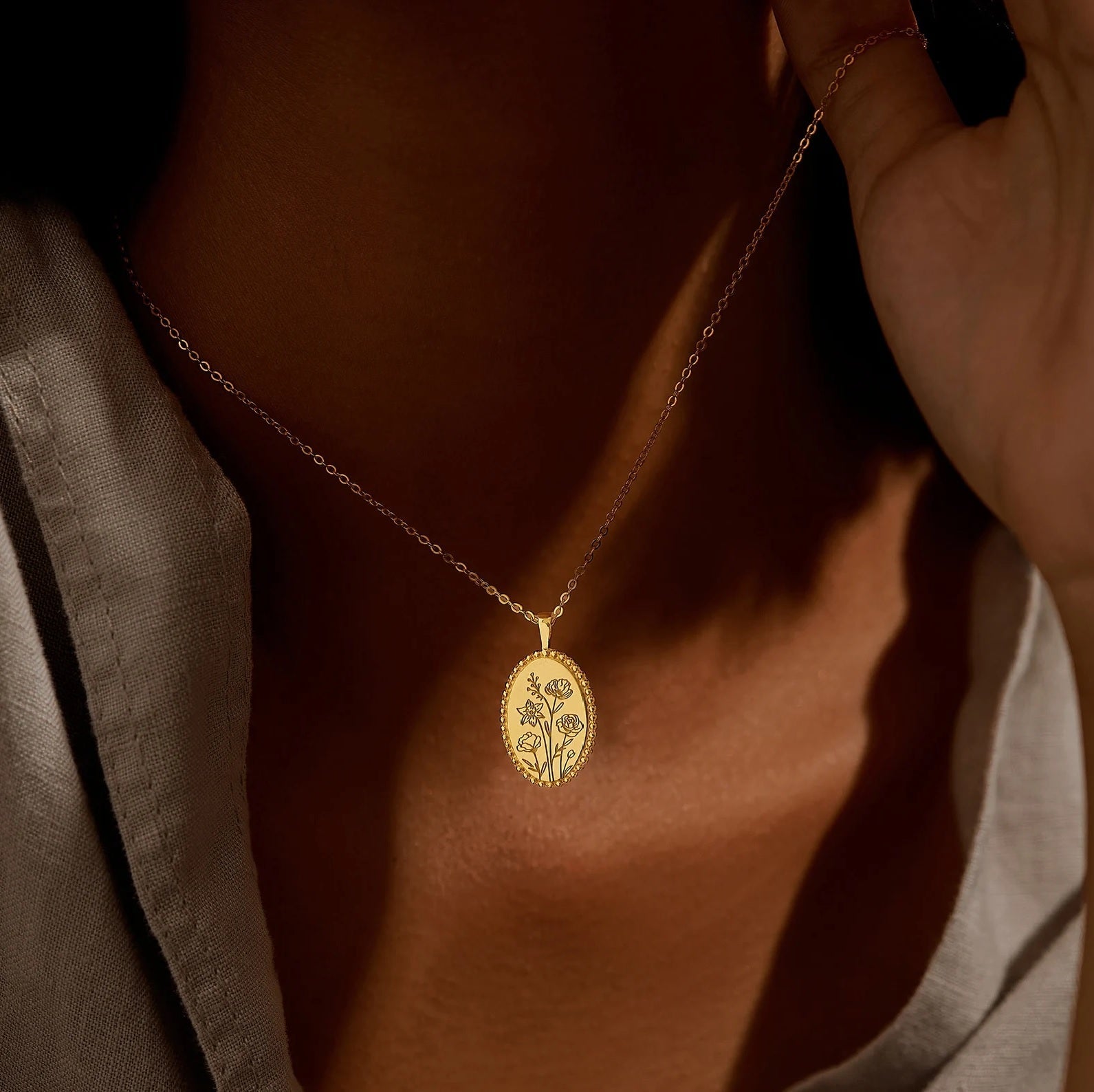 The Personalized Birth Flower Necklace is a beautiful and meaningful piece that showcases a custom birth flower charm representing the month of your birth. This delicate necklace is the perfect personalized gift, adding a unique, floral touch to any jewelry collection.