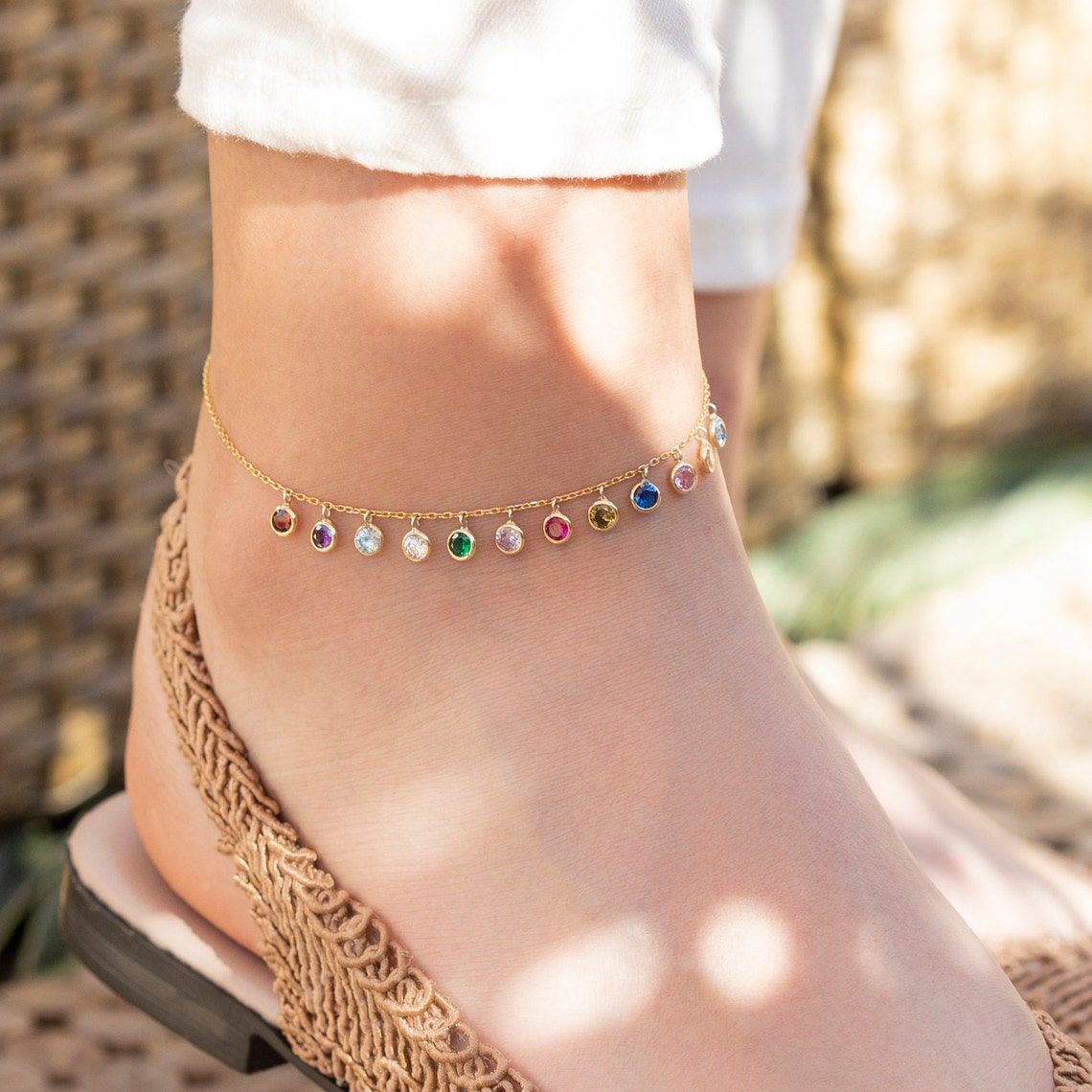 A stylish and delicate anklet featuring a minimalist design with colorful stones, perfect for adding a subtle pop of color to any outfit. Ideal for girls who love simple yet chic accessories.