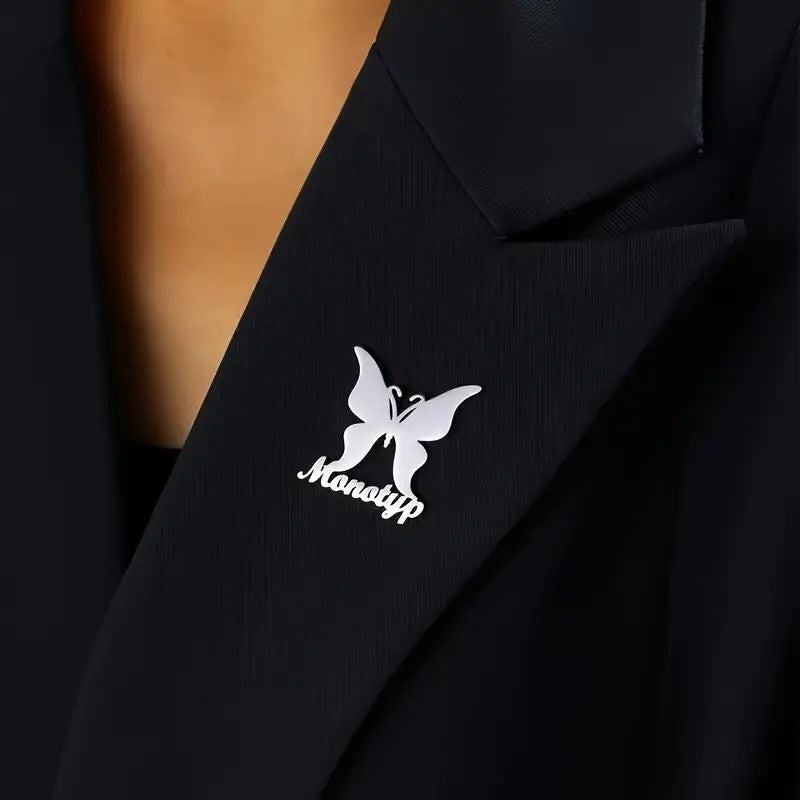 Enhance your look with the Personalized Butterfly Name Brooch. Featuring a graceful butterfly design, this brooch can be customized with your name or initials, offering a perfect blend of elegance and personalization for any occasion.