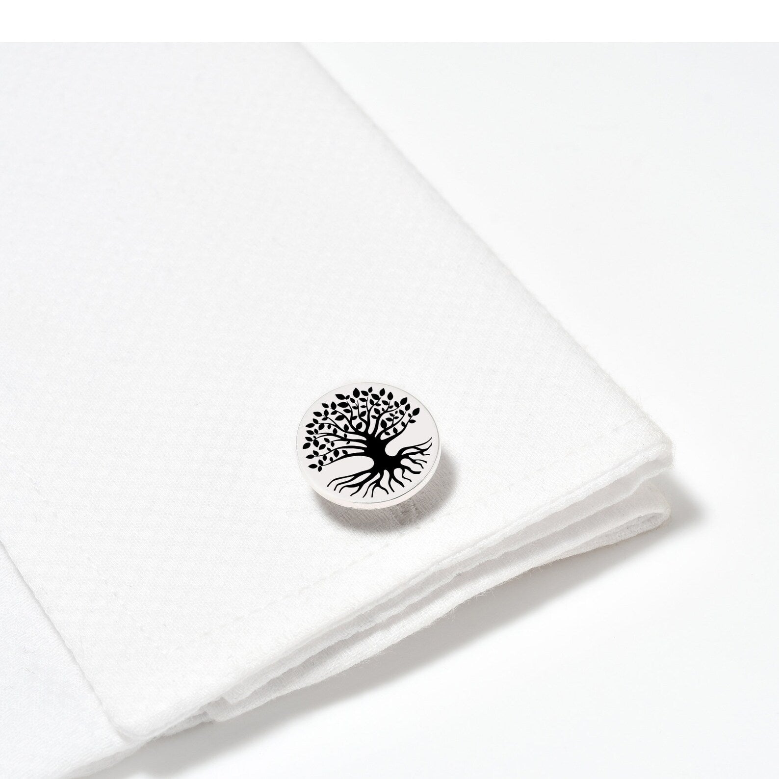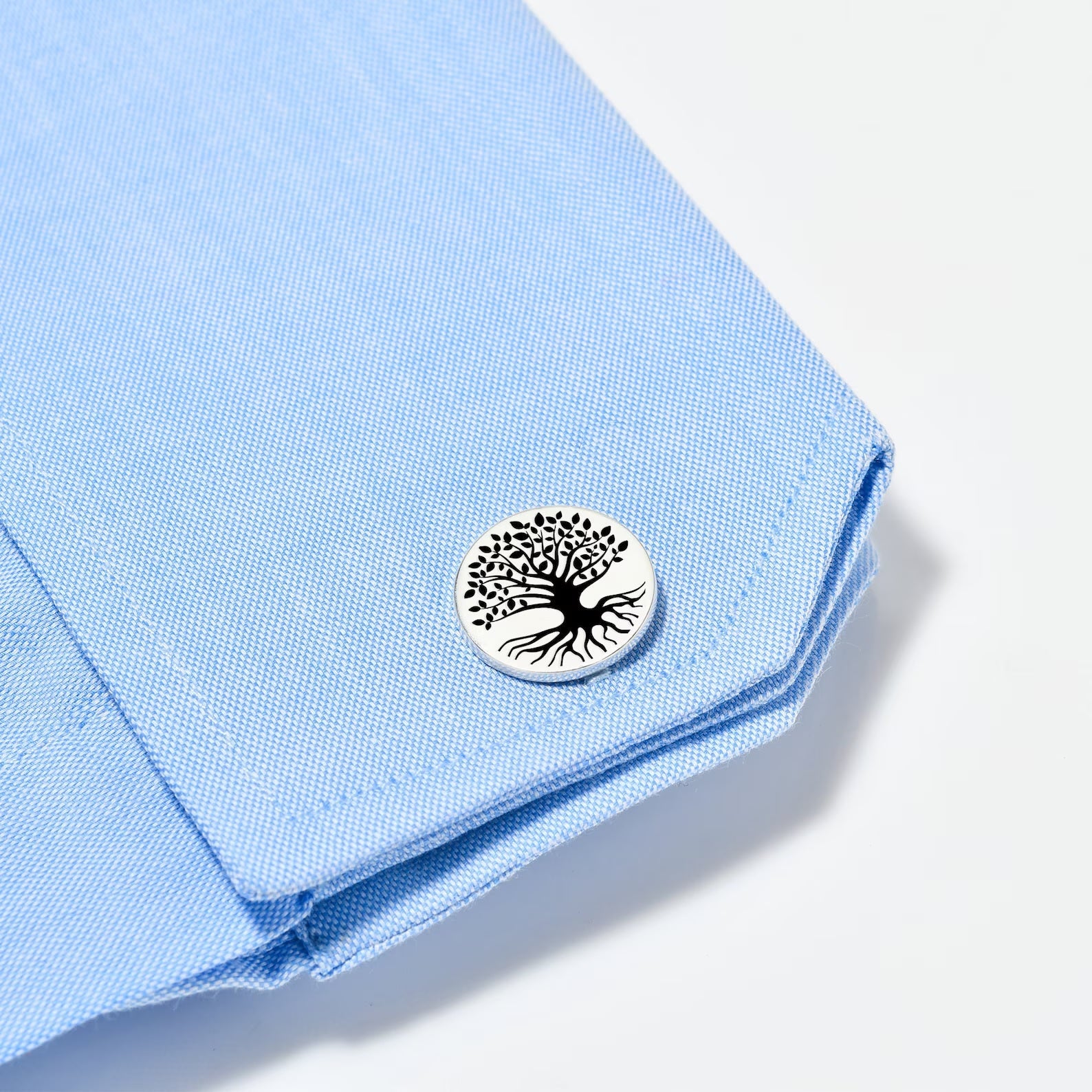 These Dainty Tree of Life Cuff Links feature an elegant, intricate design symbolizing strength, growth, and connection. Crafted with attention to detail, they add a touch of sophistication and nature-inspired beauty to any formal outfit.
