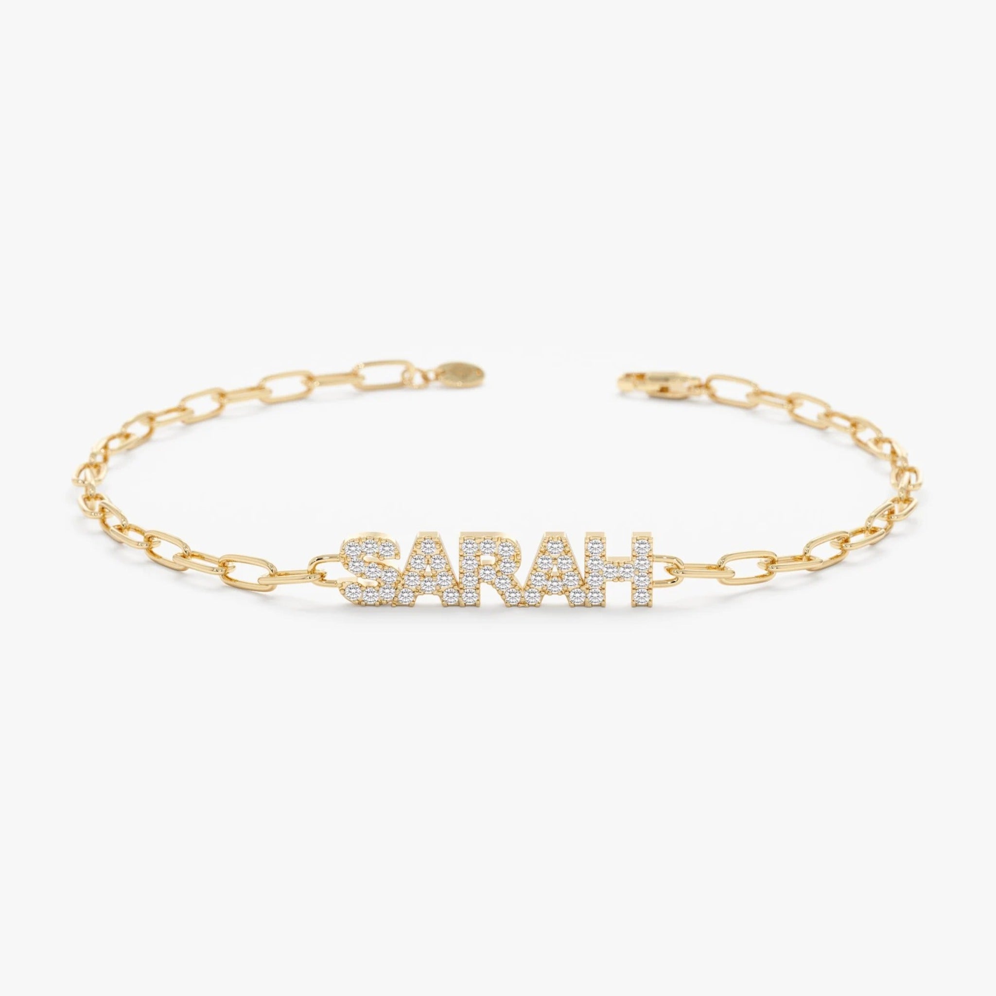 Add a touch of luxury and personalization to your everyday style with our Customized Moissanite Diamond Name Bracelet. Crafted with precision and elegance, this bracelet features a sparkling moissanite diamond nameplate set on a trendy paperclip chain, creating the perfect blend of classic and modern sophistication.