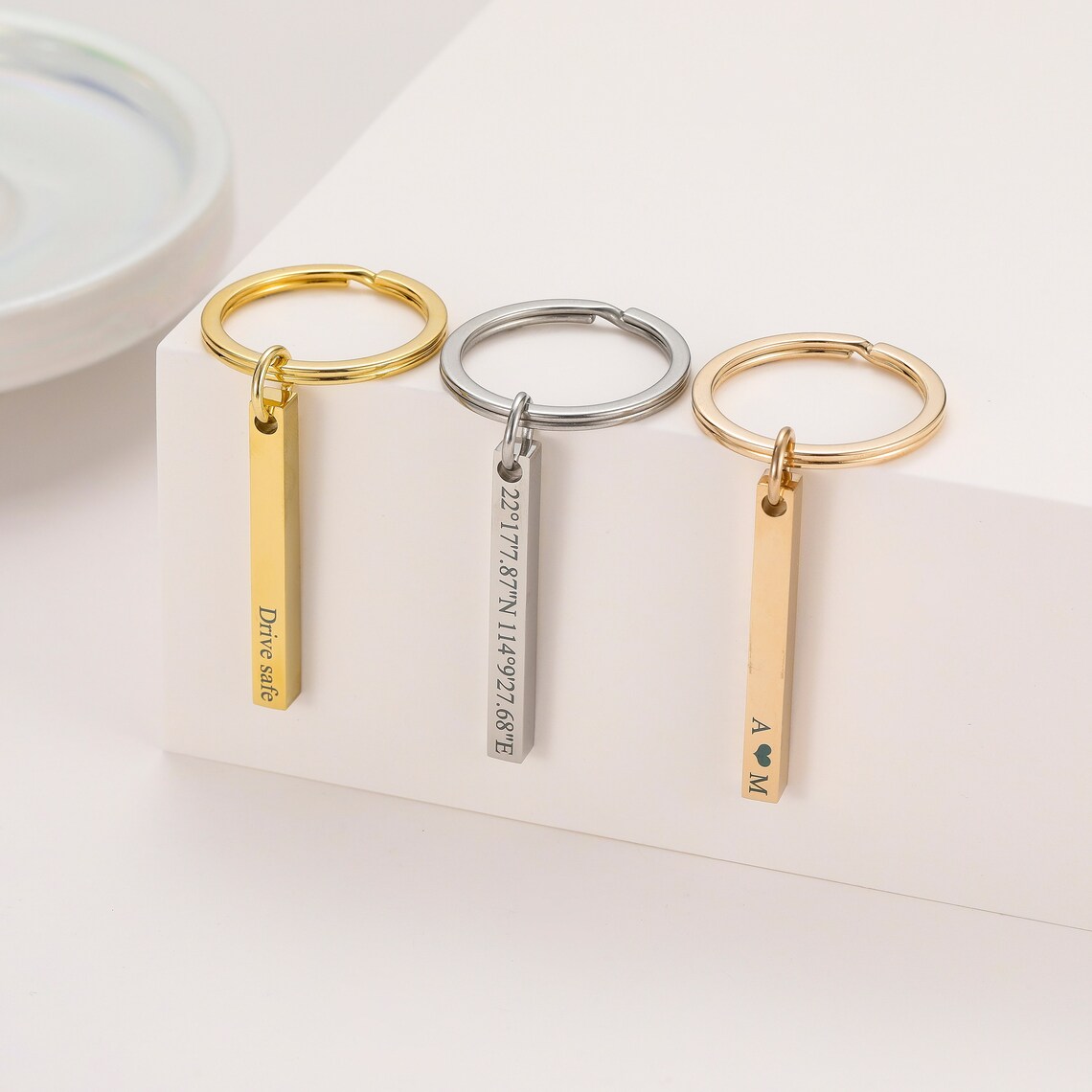 A sleek and stylish bar keychain, personalized with custom engraving, making it a perfect gift for special occasions. Ideal for carrying a personal touch wherever you go.