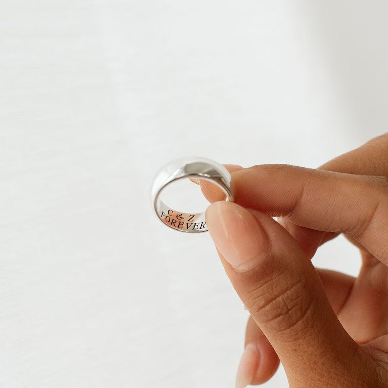 A Personalized Engraved Bold Band Ring is a stylish and custom piece of jewelry featuring a wide band that can be engraved with a special message, name, or date. Its bold design makes it a statement piece, ideal for those seeking a unique and meaningful accessory that combines elegance with personal significance.