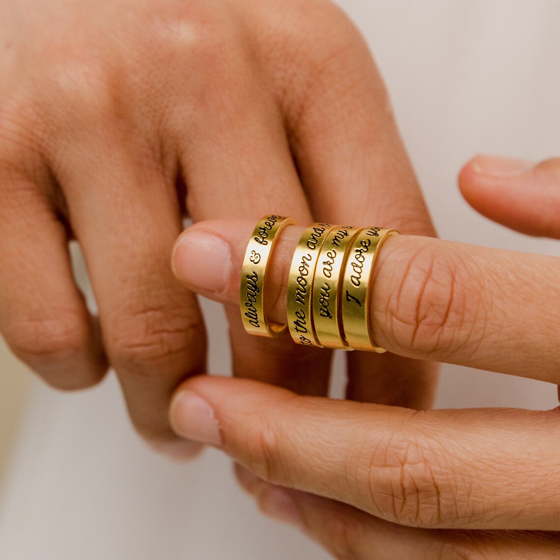 A Personalized Engraved Message Ring is a unique piece of jewelry, custom-engraved with a special message, name, or date. It serves as a thoughtful, meaningful gift, ideal for marking significant occasions like anniversaries, birthdays, or special milestones. The engraving adds a personal touch, making it a keepsake that carries sentimental value for the wearer. Whether it’s a symbol of love, friendship, or a memorable moment, this ring is a beautiful reminder of what truly matters.
