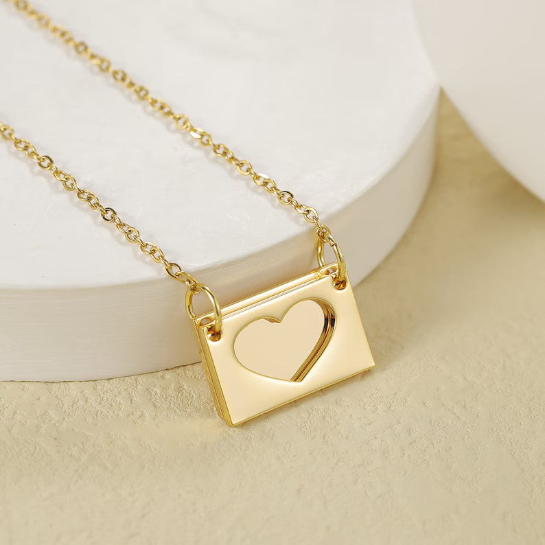 A Personalized Envelope Locket Necklace is a charming and meaningful accessory that can be customized with initials or a special message. Shaped like a delicate envelope, this locket opens to hold a personal photo or note, making it a perfect keepsake or sentimental gift.