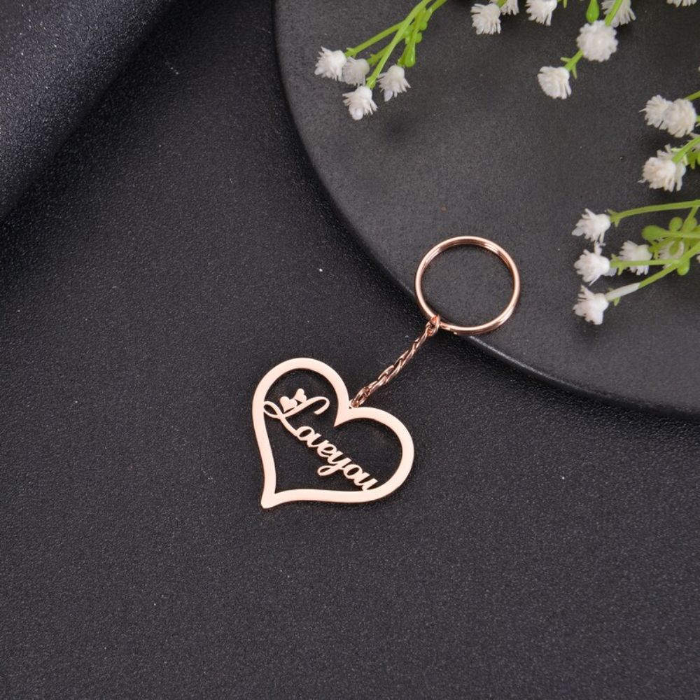 The Personalized Name Heart Shape Keychain is a charming and sentimental accessory that features your name or a special word engraved in a heart-shaped design. Crafted with care, this keychain adds a personal touch to your everyday essentials and makes a thoughtful gift for loved ones.
