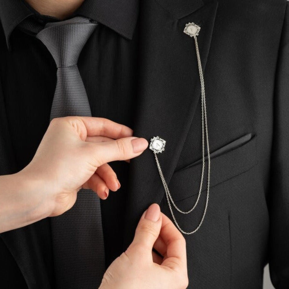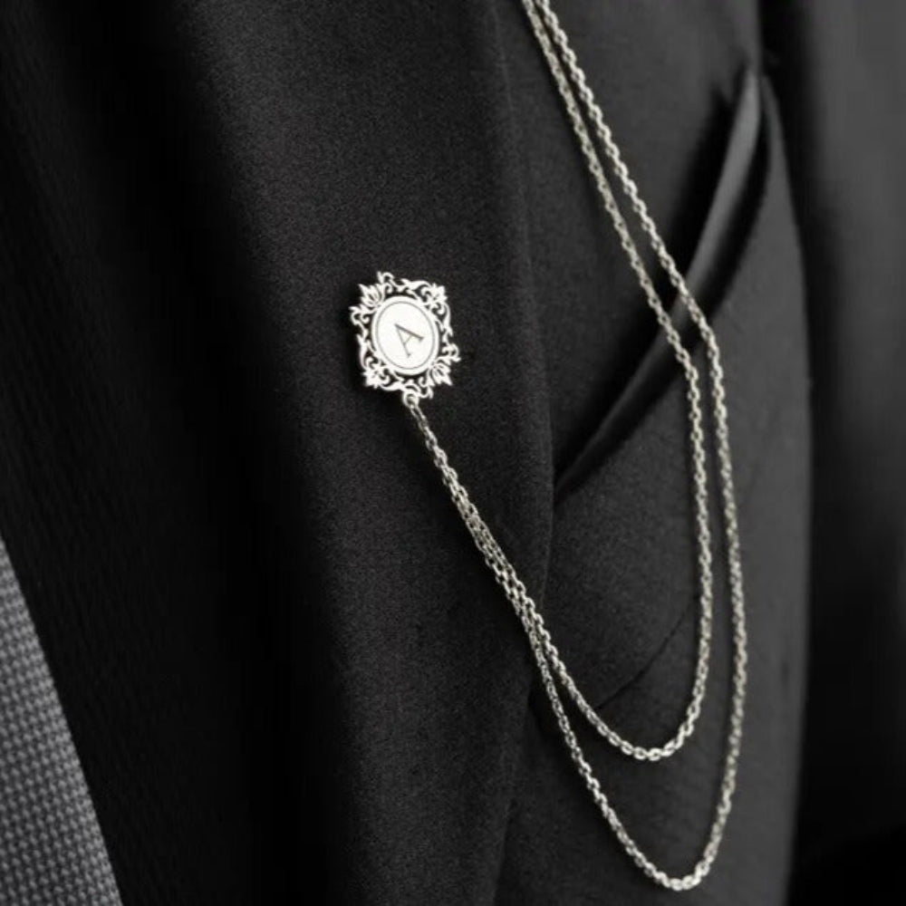 Personalized Initial Letter Jacket Label Chain Badge Pin