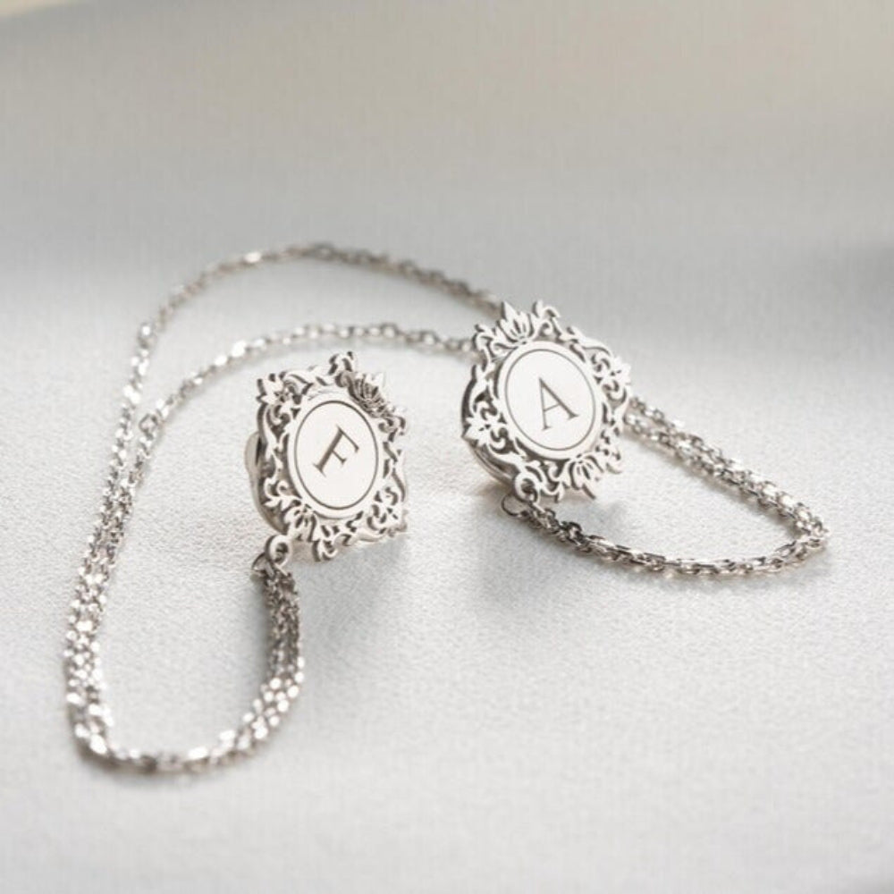 The Custom Letter Jacket Label Chain Pin is a personalized accessory designed to add a unique touch to your letterman jacket. Featuring your initials or custom text, this high-quality pin attaches securely to your jacket's label, making it a perfect way to showcase your achievements and individuality. Ideal for sports teams, clubs, or school pride, this chain pin offers a stylish, personalized finish to any jacket.
