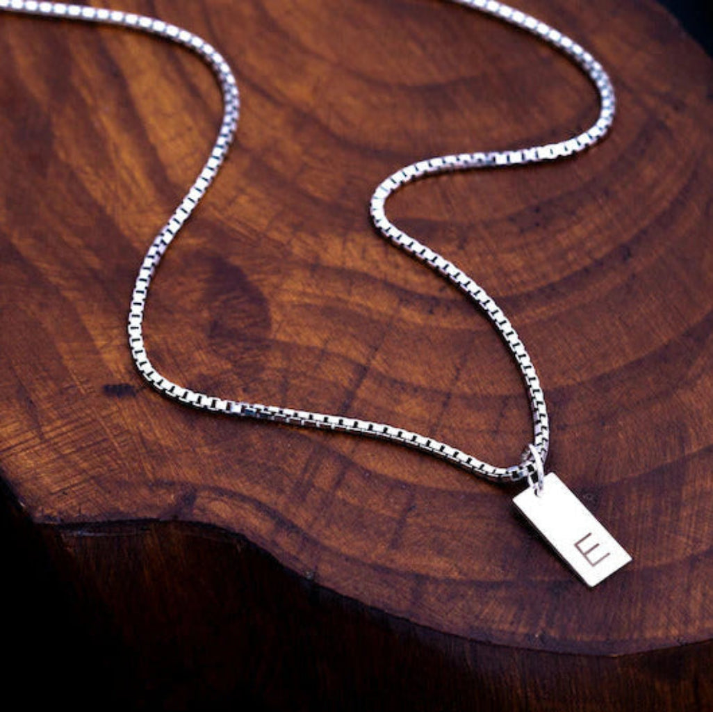 A Personalized Men's Necklace in Box Chain features a sleek and durable design, perfect for adding a custom touch to any outfit. Made with a strong, interlocking box chain, this necklace can be personalized with initials, names, or meaningful engravings, making it a stylish and thoughtful gift for any occasion.