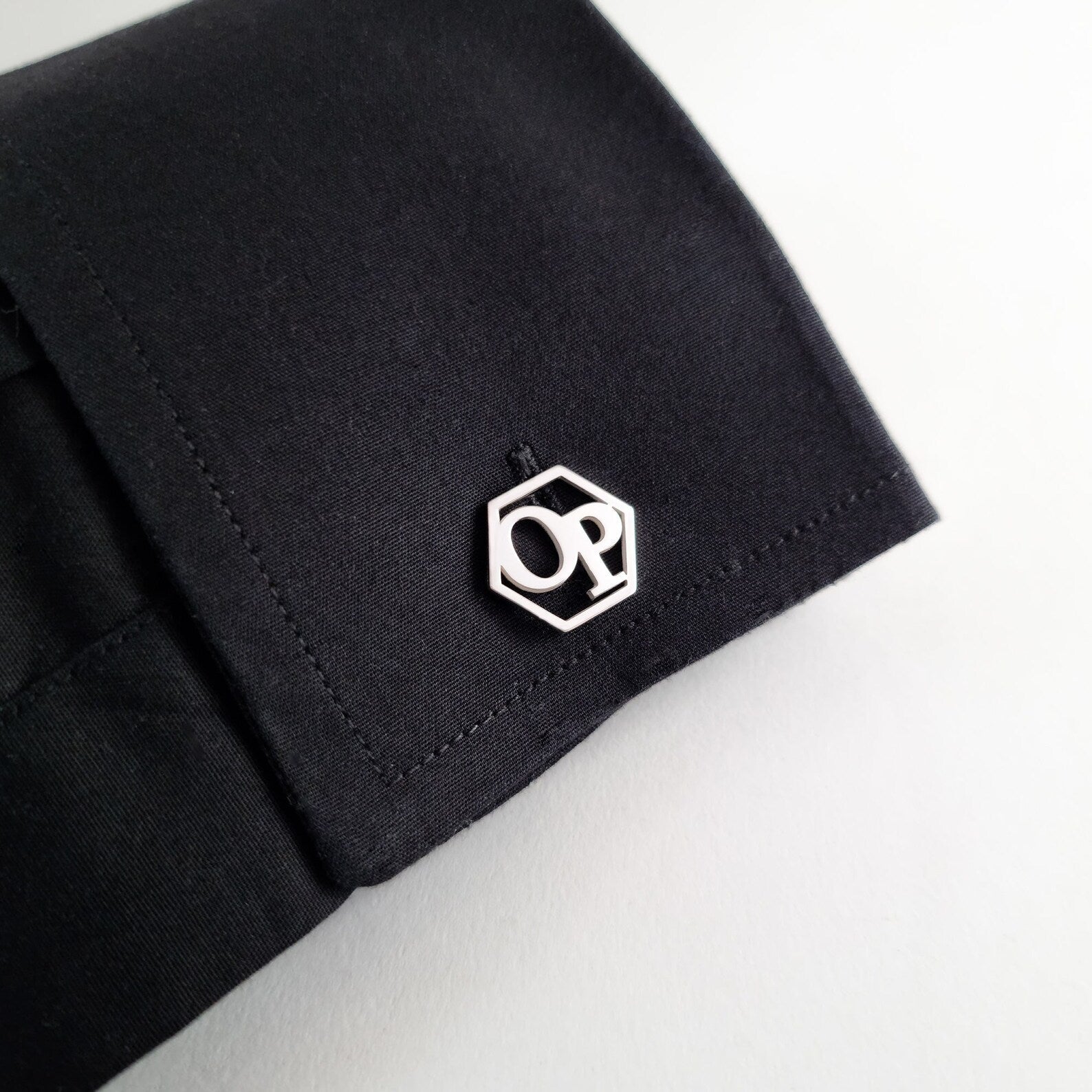These Personalized Hexagon Initials Cufflinks feature a sleek, geometric design with custom-engraved initials, making them a stylish and unique accessory. Perfect for adding a personal touch to formal attire or as a thoughtful gift for someone special.